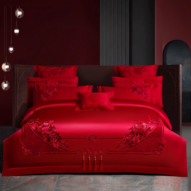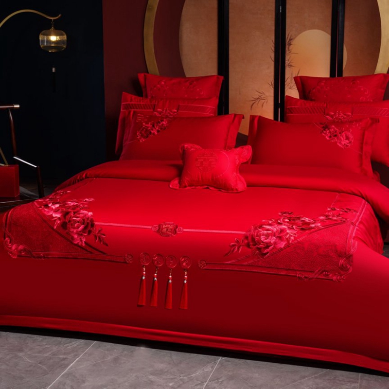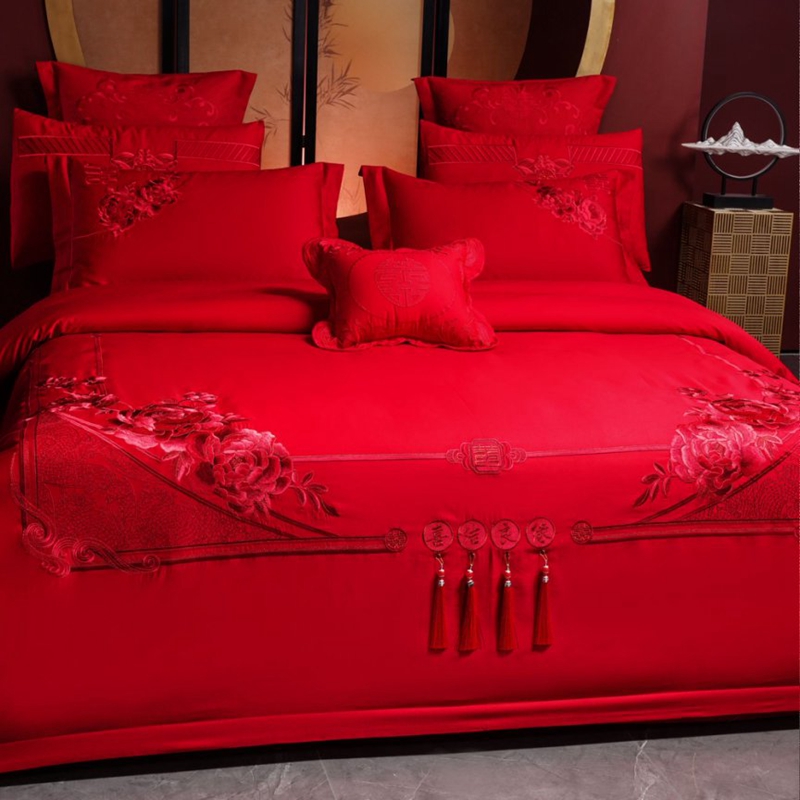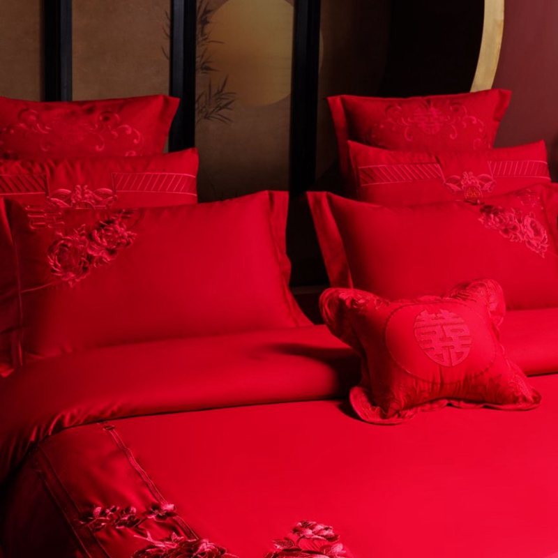 当前位置: 91家纺网 > 商品网购 > 床品套件 > 四件套 > 婚庆四件套 > 布乐意 2025新款全棉长绒棉贡缎提花全工艺喷气重工新中式绣花大红婚庆四件套多件套直播喜结良缘【红】