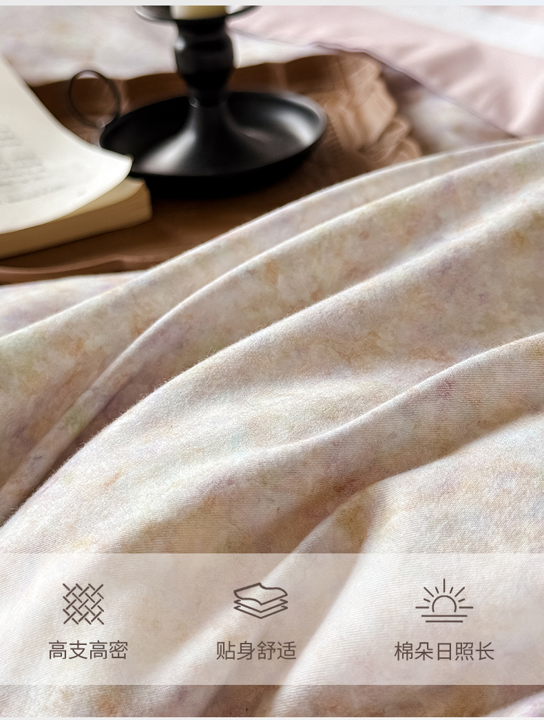 朵希曼 2026新款全棉纯棉大版陶瓷磨毛四件套 若梦浮生-粉