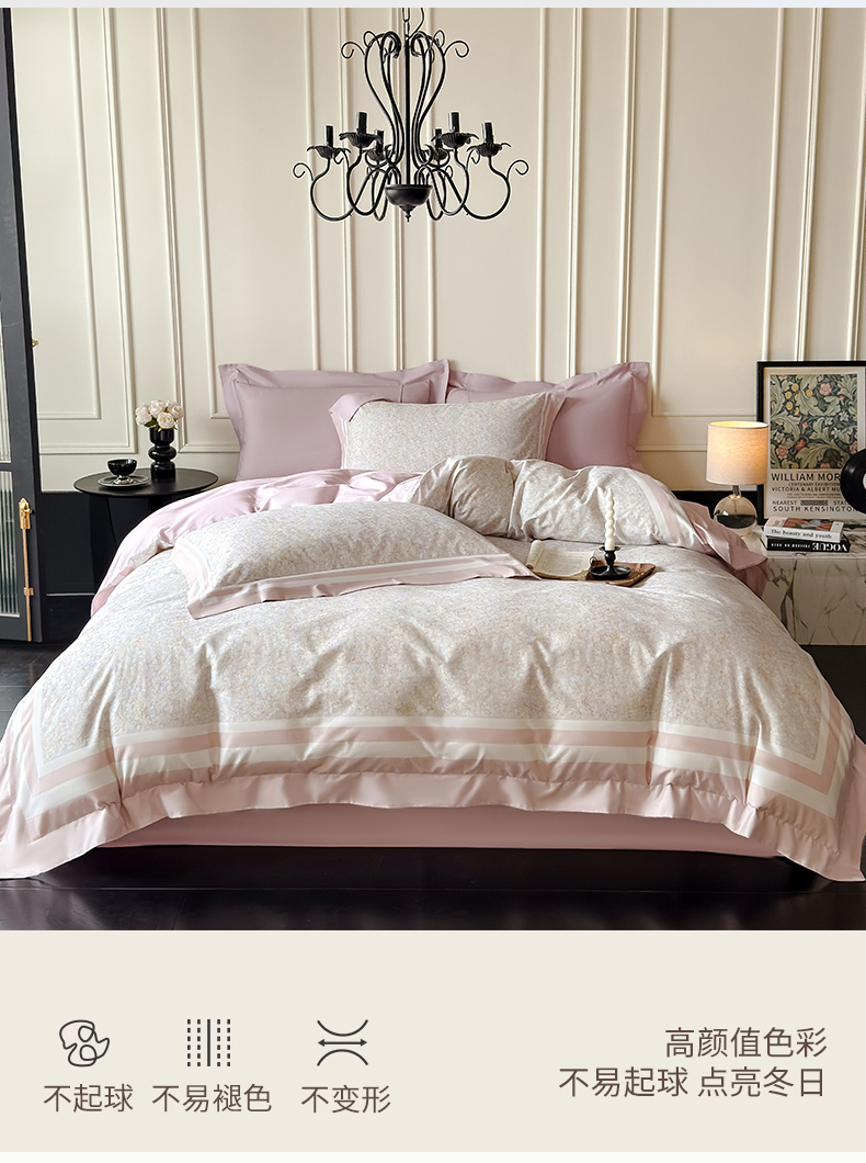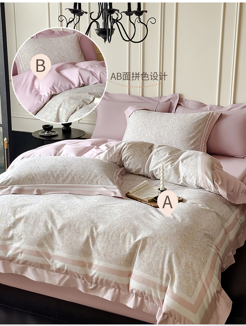 商品名称:朵希曼 2026新款全棉纯棉大版陶瓷磨毛四件套 若梦浮生-粉