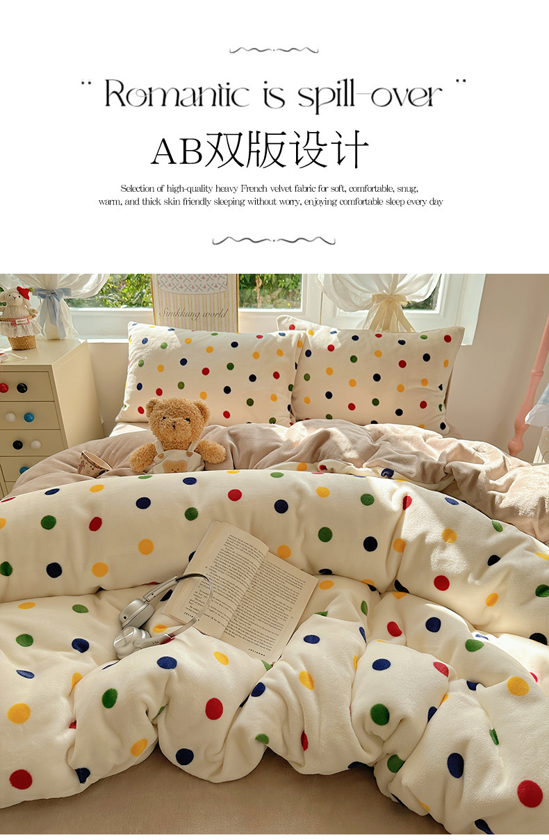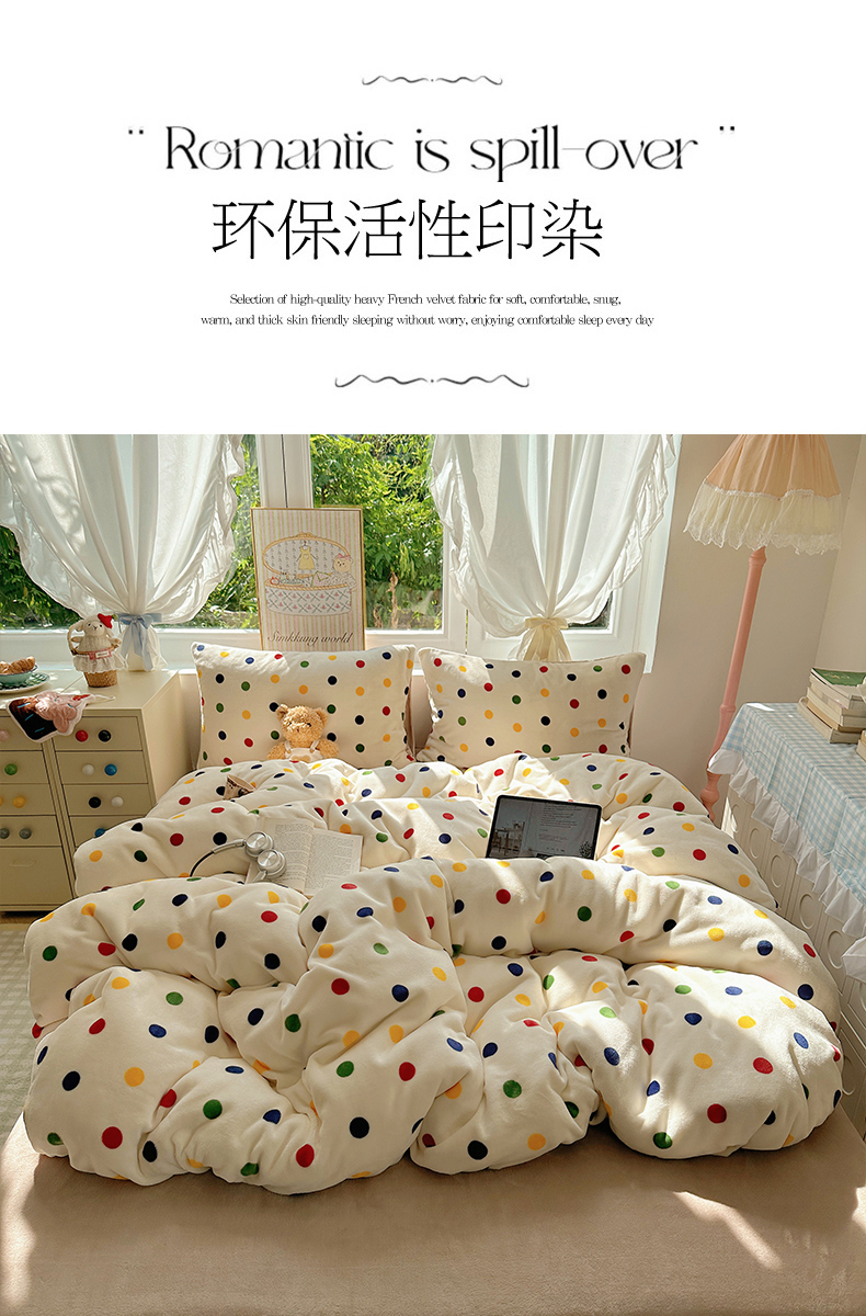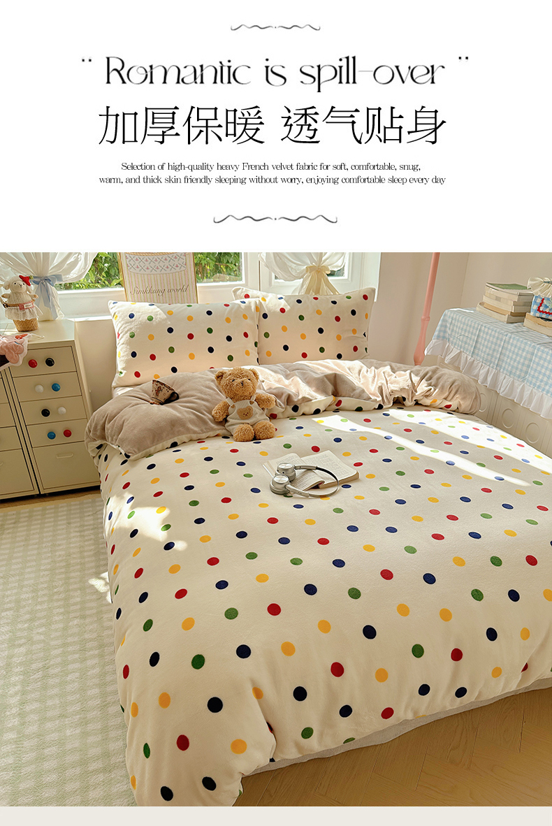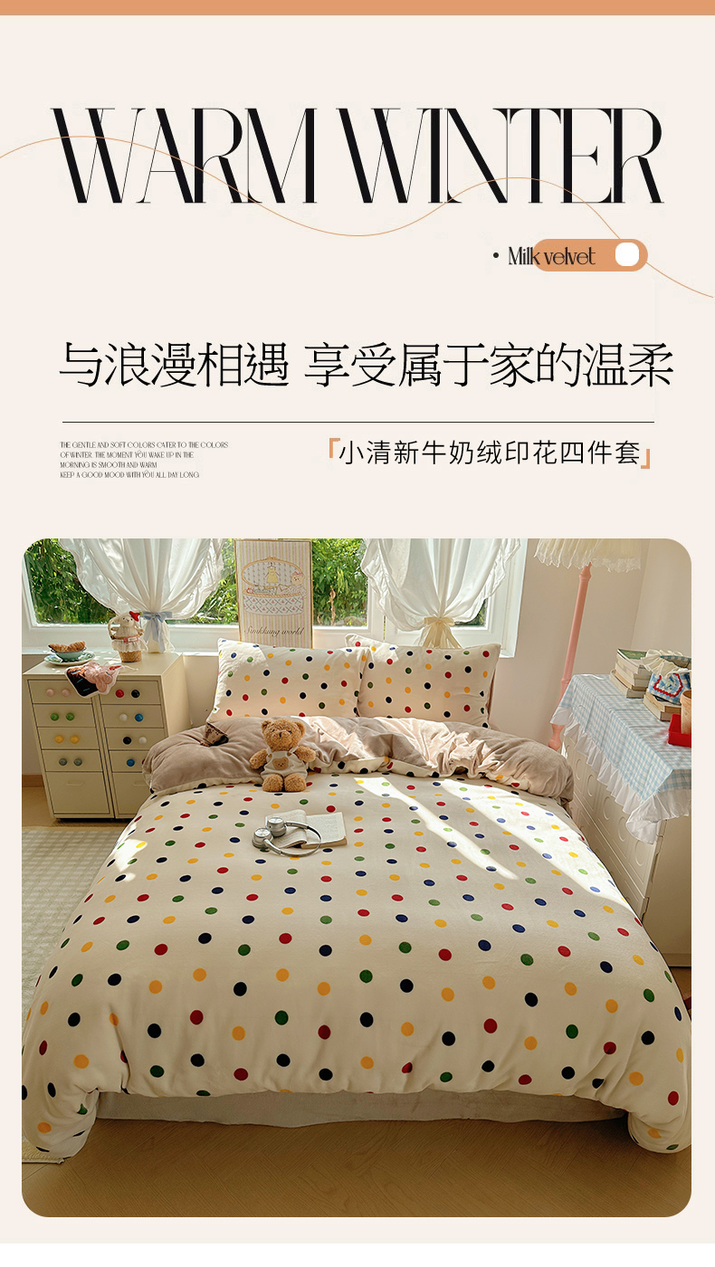 当前位置: 91家纺网 > 商品网购 > 床品套件 > 四件套 > 牛奶绒四件套 > 优选 2025新款小清新加厚高克重牛奶绒四件套直播爆款电商爆款奇异波点
