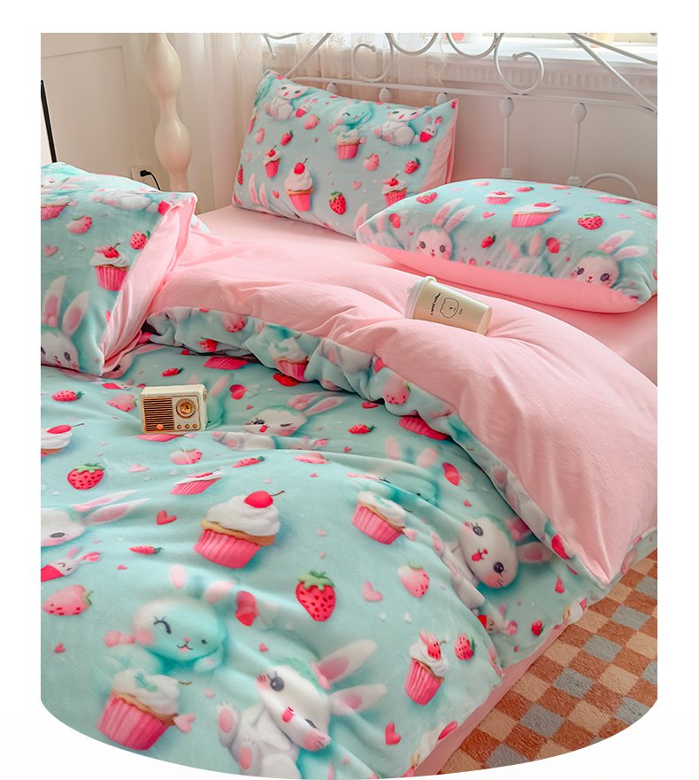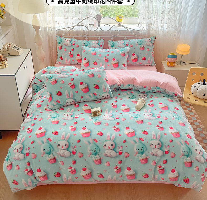潮邦创意家居 2025新款5D数码牛奶绒印花系列四件套 甜梦