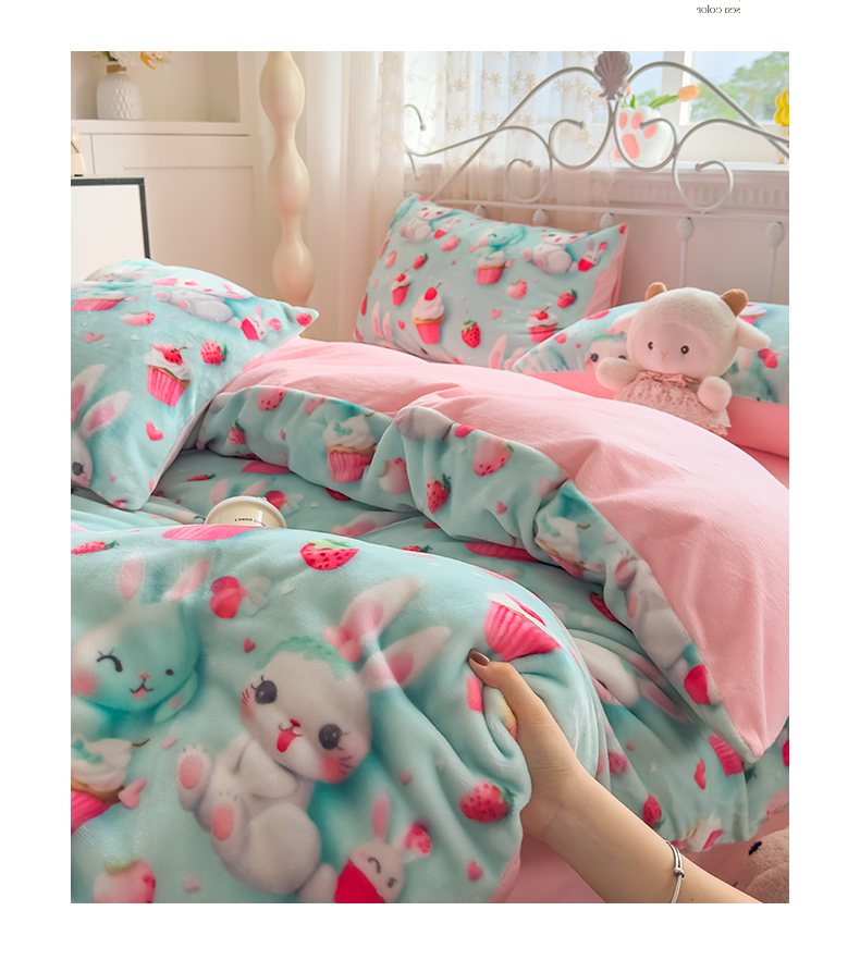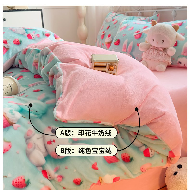 (总)潮邦创意家居 2025新款大版卡通牛奶绒四件套,草莓熊,熊熊零食,遨游太空,大脸猫猫,搞怪小熊,活泼女孩,机灵狗狗,敬礼狗狗,卡通公主,可爱女孩,可爱松鼠,女孩与兔,温馨太空,熊熊party,悠闲生活,友爱龙龙