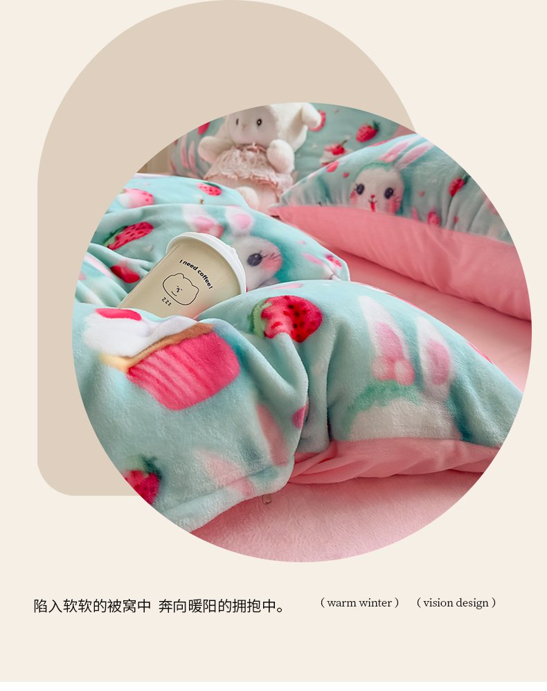 (总)潮邦创意家居 2025新款小米兔泡泡兔绒保暖四件套,米兔白,米兔豆沙,米兔灰,米兔卡其,米兔绿