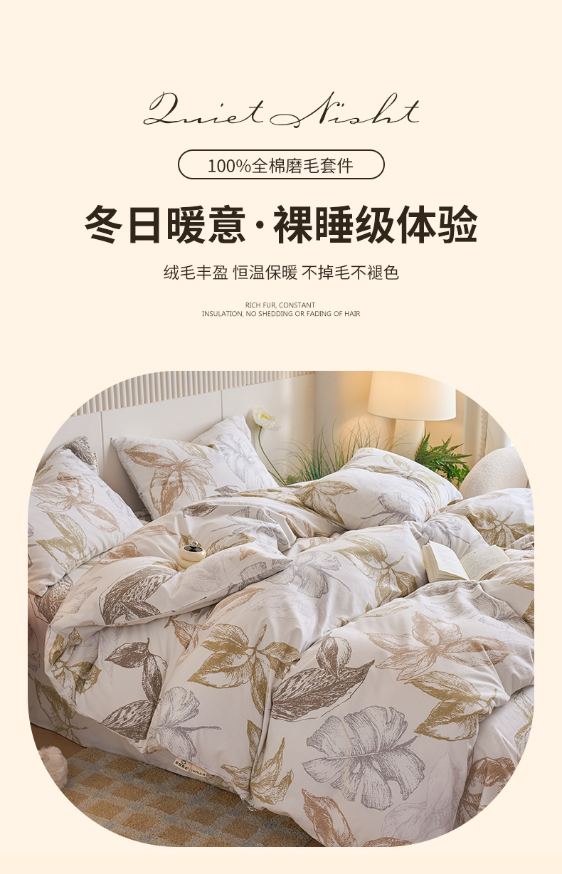 当前位置: 91家纺网 > 商品网购 > 床品套件 > 四件套 > 普通磨毛四件套 > 春皖家纺 2025新款原棉磨毛四件套-风格一留香