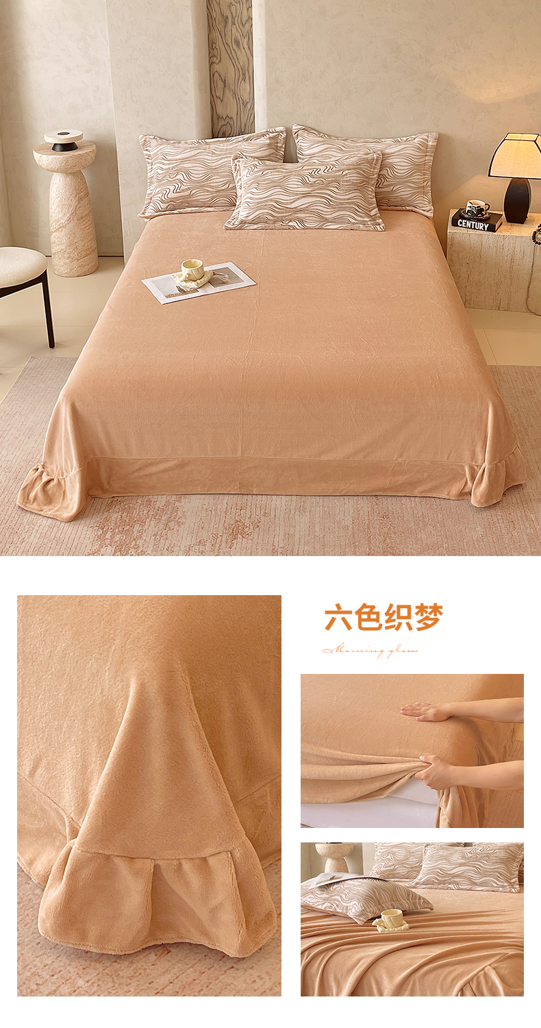 商品名称:春皖家纺 2025新款全消光雕花绒牛奶绒单品床单 六色织梦