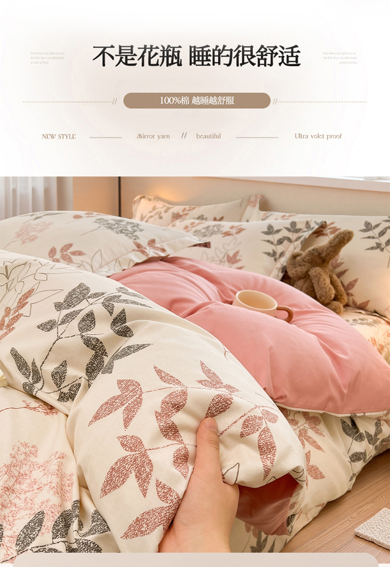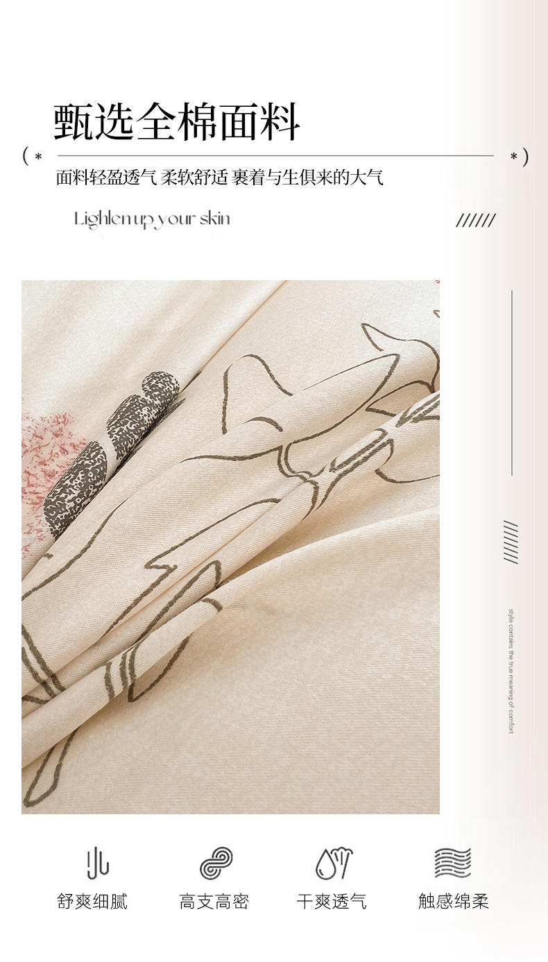 当前位置: 91家纺网 > 商品网购 > 床品套件 > 四件套 > 全棉普通四件套 > 名优家纺 2026新款60S13374高支密全棉印花纯色四件套 念枝