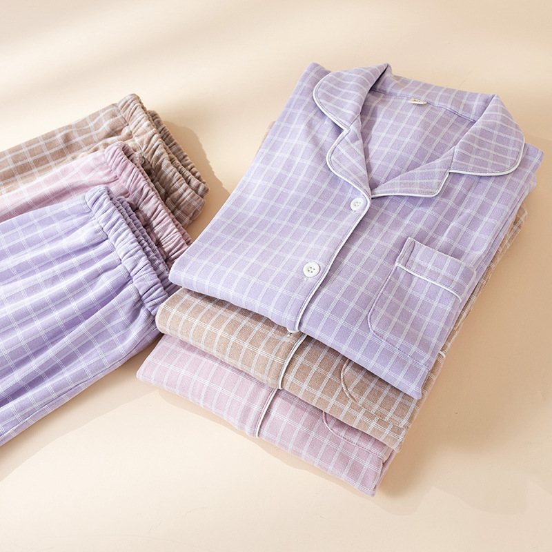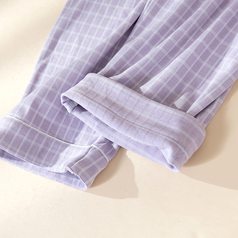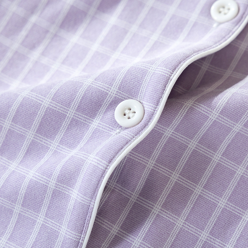 洛兰沙家居馆 2025新款秋冬保暖女士家居服素行简约格休闲舒适睡衣长袖长裤翻领弹力 紫色