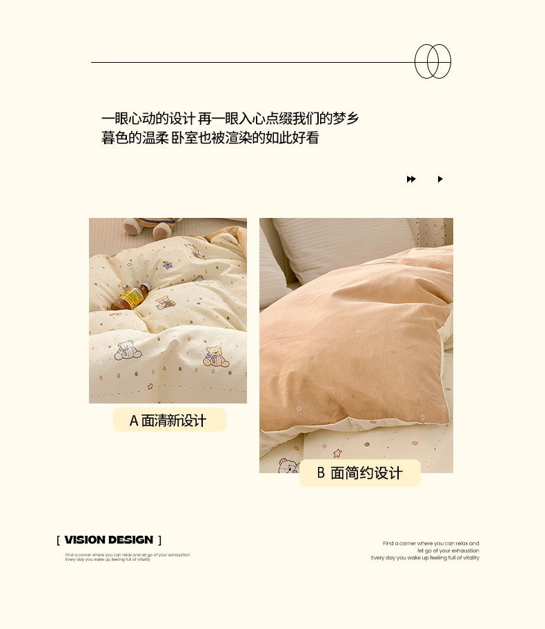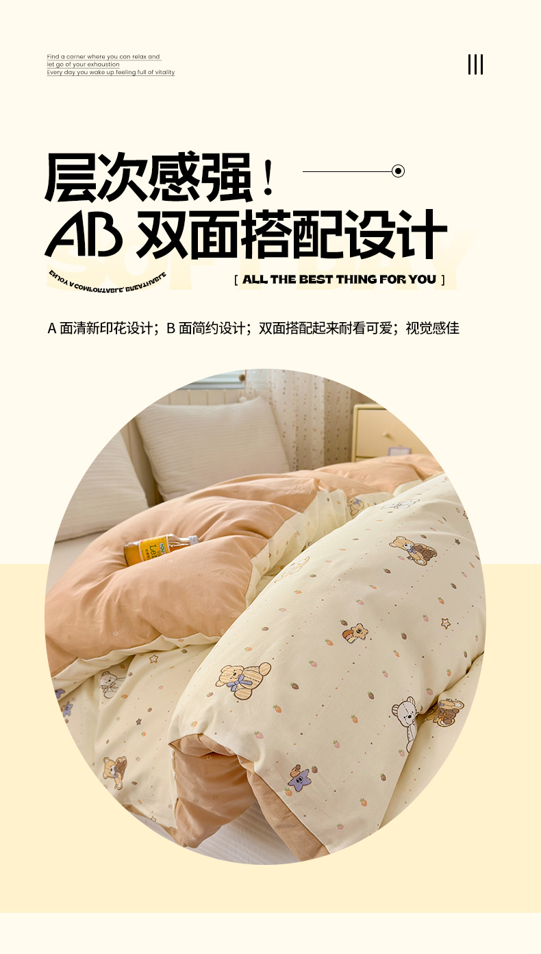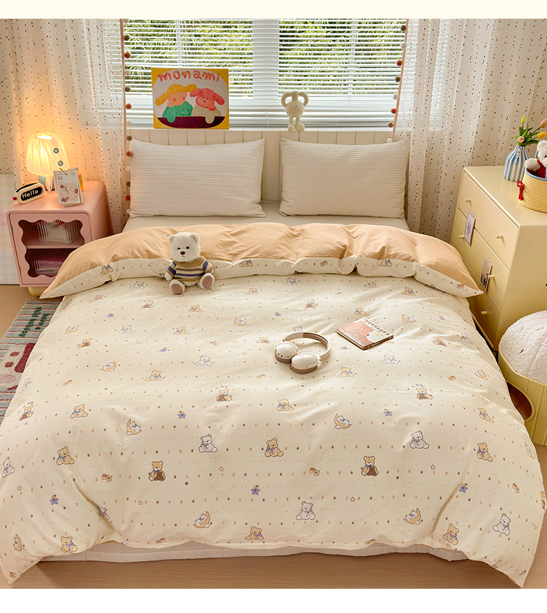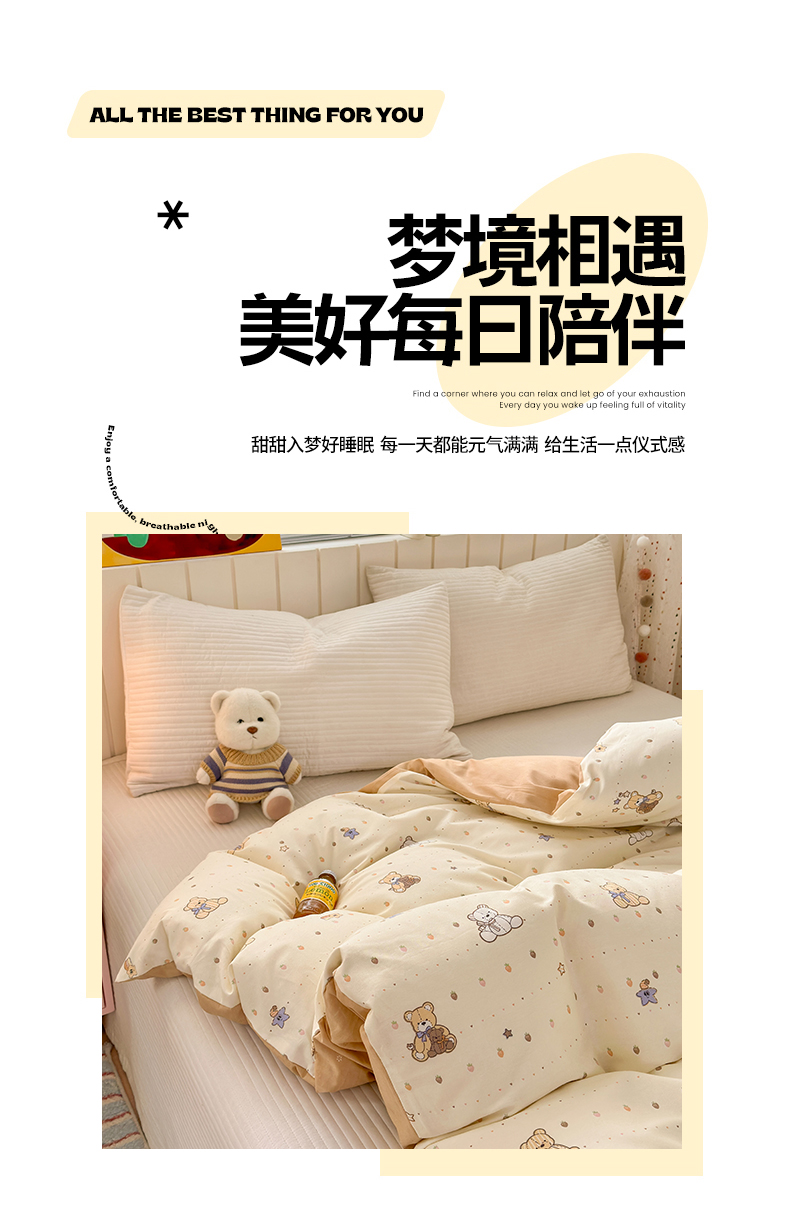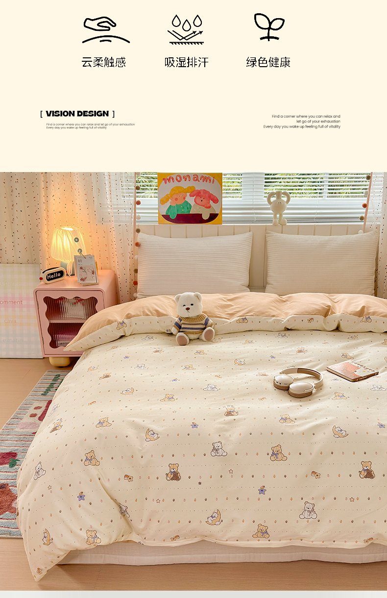 • 91家纺网 家纺一手货源 找家纺 清雅福 2026春夏新款INS小清新40支全棉13372单被套第二批 星星布偶