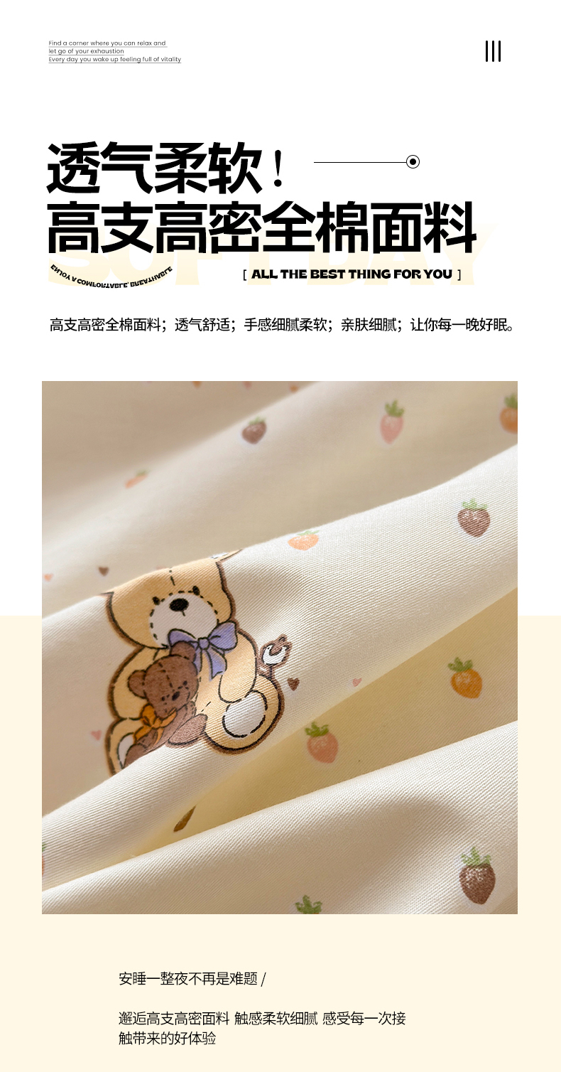 当前位置: 91家纺网 > 商品网购 > 床上用品 > 被套 > 清雅福 2026春夏新款INS小清新40支全棉13372单被套第二批 星星布偶