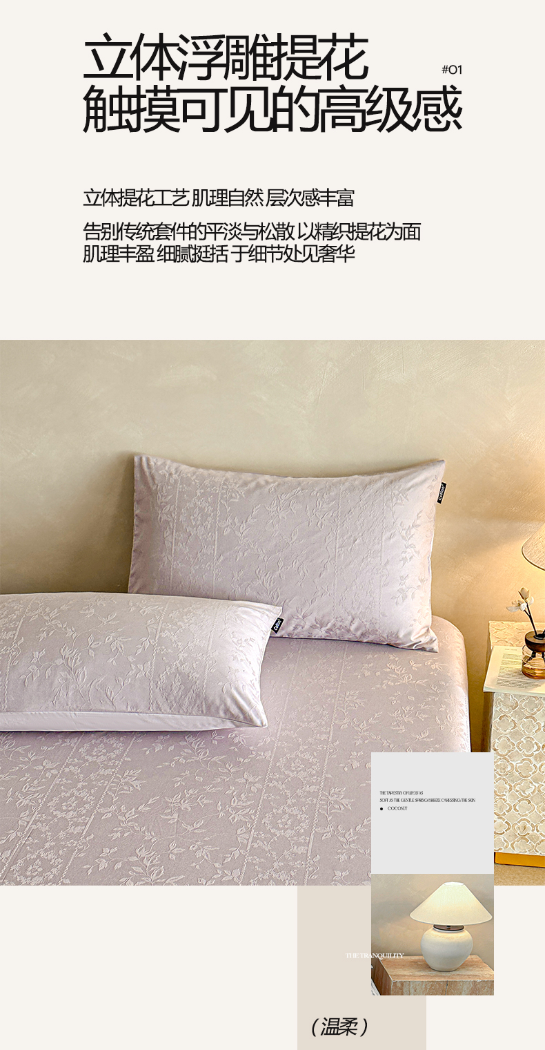 (总)涵宸家纺 2026新款全棉提花里拉系列四件套,柏拉-白,花夕-粉,凌维-灰,凌维-绿,律动格韵,千喜格,沁语-粉金,沁语-奶白,沁语-紫,山慕色,甜心漾,微芒,雾絮-灰,雾絮-奶白,毓影-豆沙,毓影-奶白,云暖-粉,云暖-紫,织羽