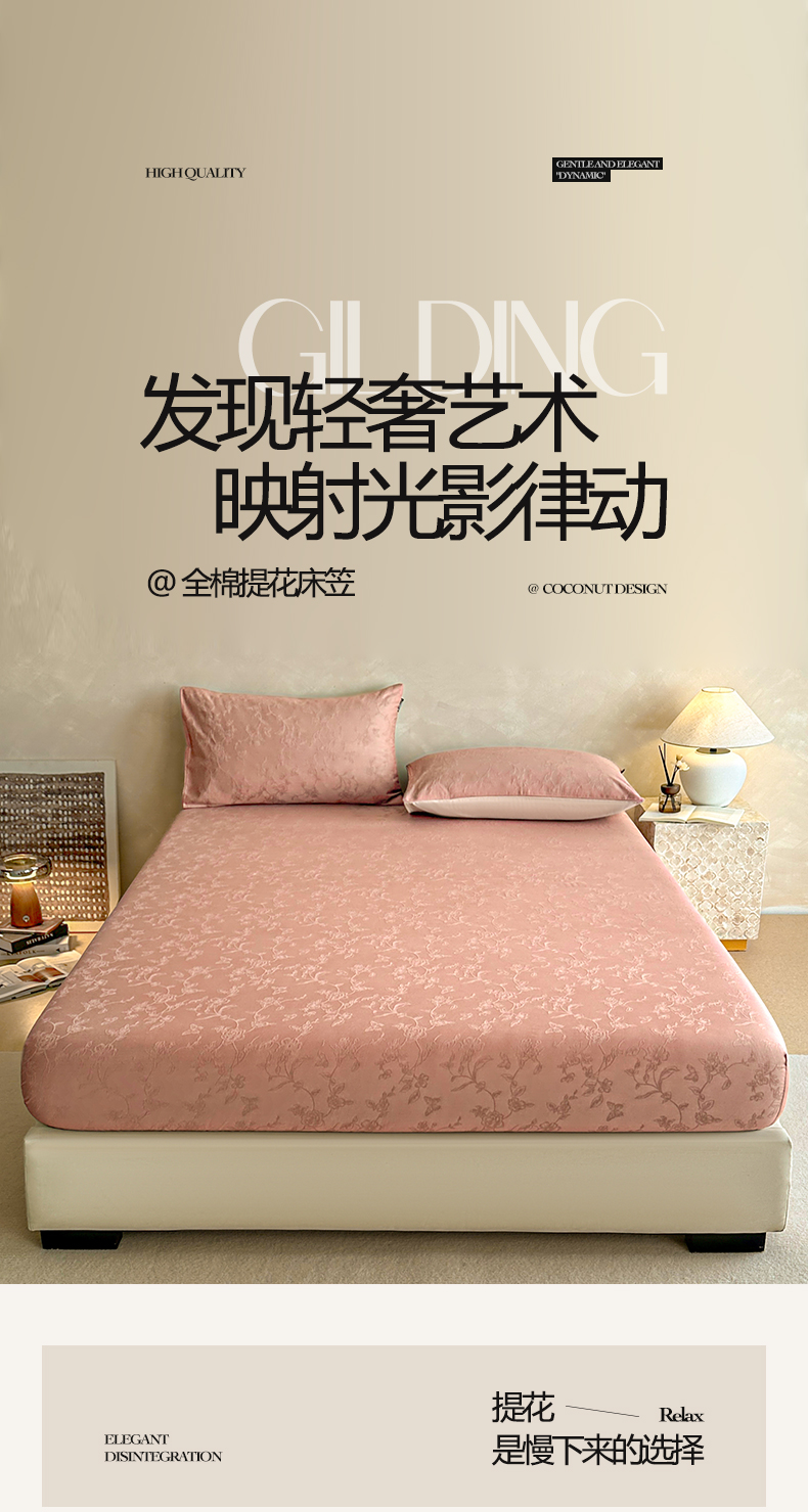 • 91家纺网 家纺一手货源 找家纺 涵宸家纺 2026新款全棉提花里拉系列单床笠 床笠-毓影-豆沙