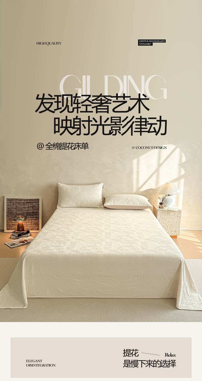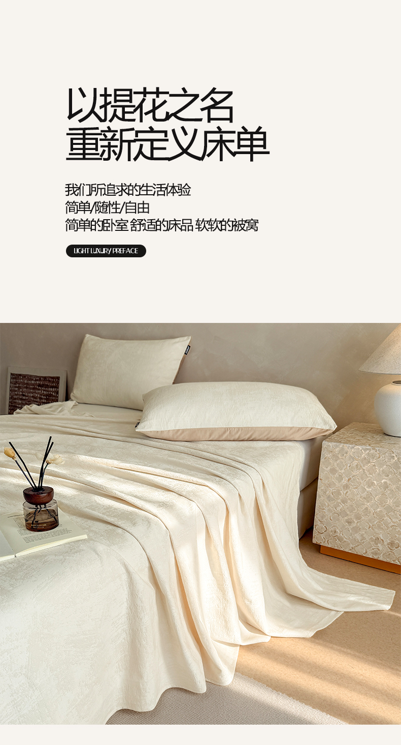 • 91家纺网 家纺一手货源 找家纺 涵宸家纺 2026新款全棉提花里拉系列单床单 床单-雾絮-奶白