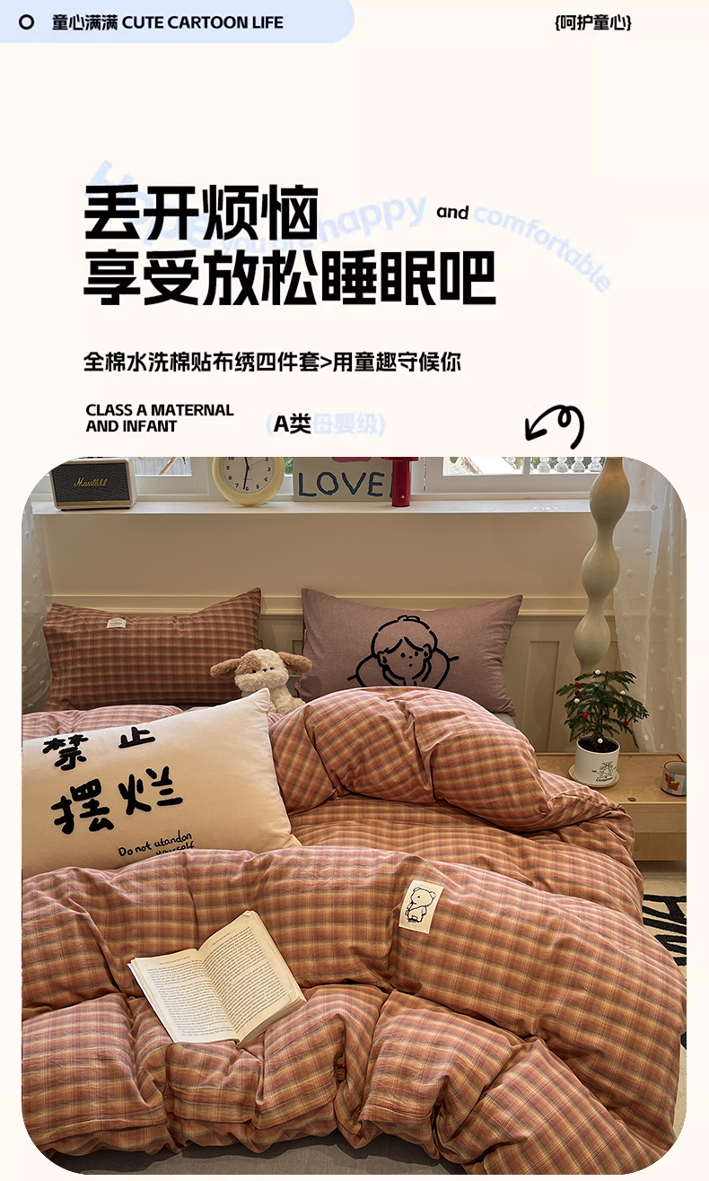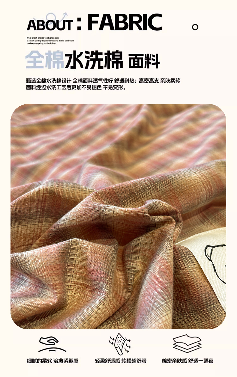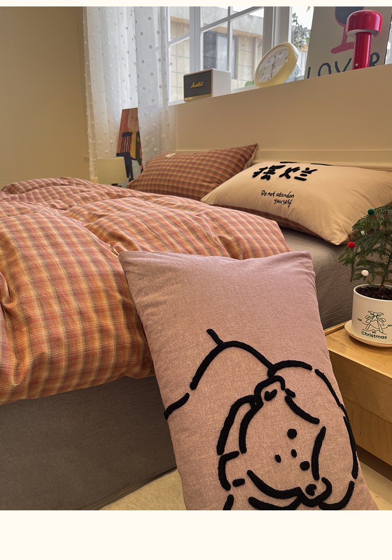 当前位置: 91家纺网 > 商品网购 > 床品套件 > 四件套 > 全棉普通四件套 > 花漾家居 2026新款无印宿舍简约全棉色织水洗棉毛巾绣四件套 咖中格