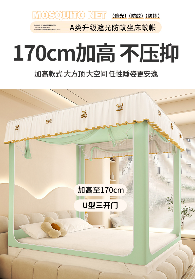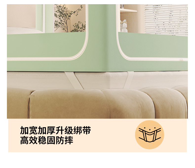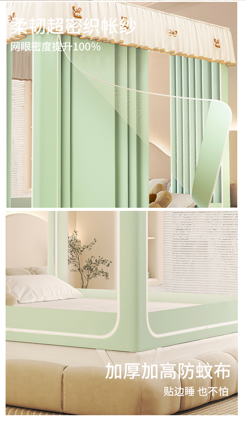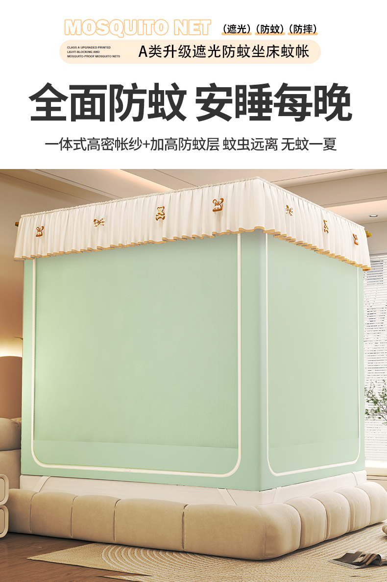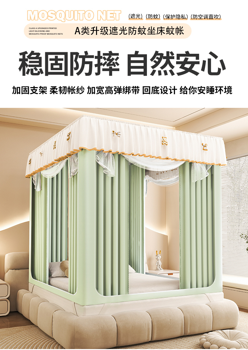 • 91家纺网 家纺一手货源 找家纺 初心家纺 2026新款时尚ins拉链式防摔坐床 床帘款遮光蚊帐 果绿(无帘)