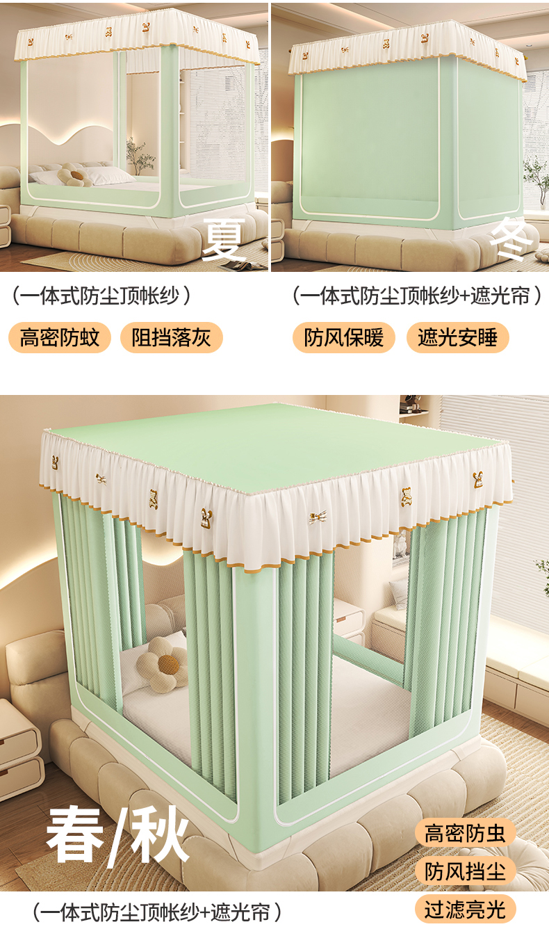 • 91家纺网 家纺一手货源 找家纺 (总)初心家纺 2026新款DIY防尘顶坐床防摔蚊帐,粉玉,果绿,米黄,浅灰,浅紫,天蓝