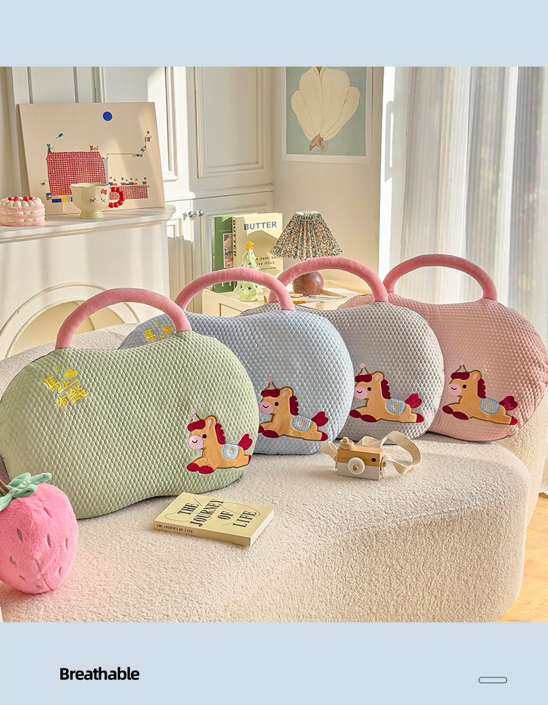 (总)诺可 2026新款丹麦绒贴布绣手提小猫抱枕被,小猫-黄,小猫-粉,小猫-灰,小猫-蓝,小猫-绿,组合图