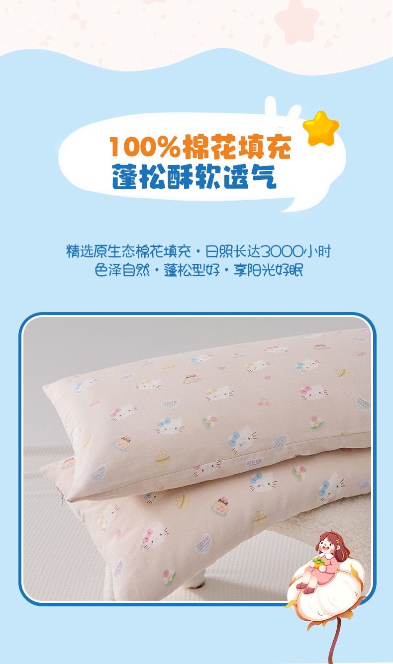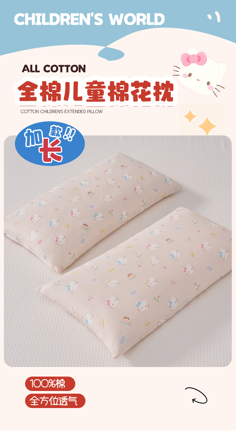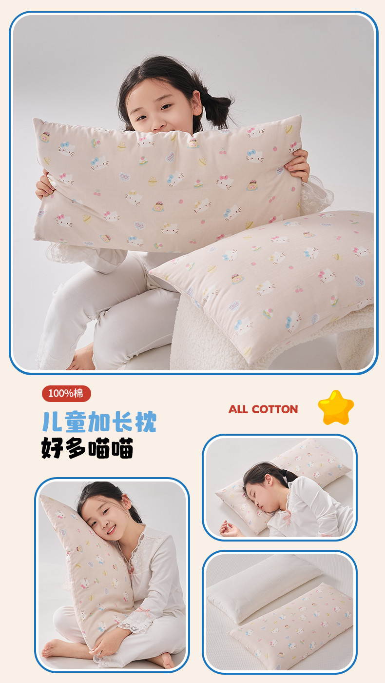 商品名称:暖阳 2026新款儿童全棉加长款棉花枕 儿童加长枕-好多喵喵