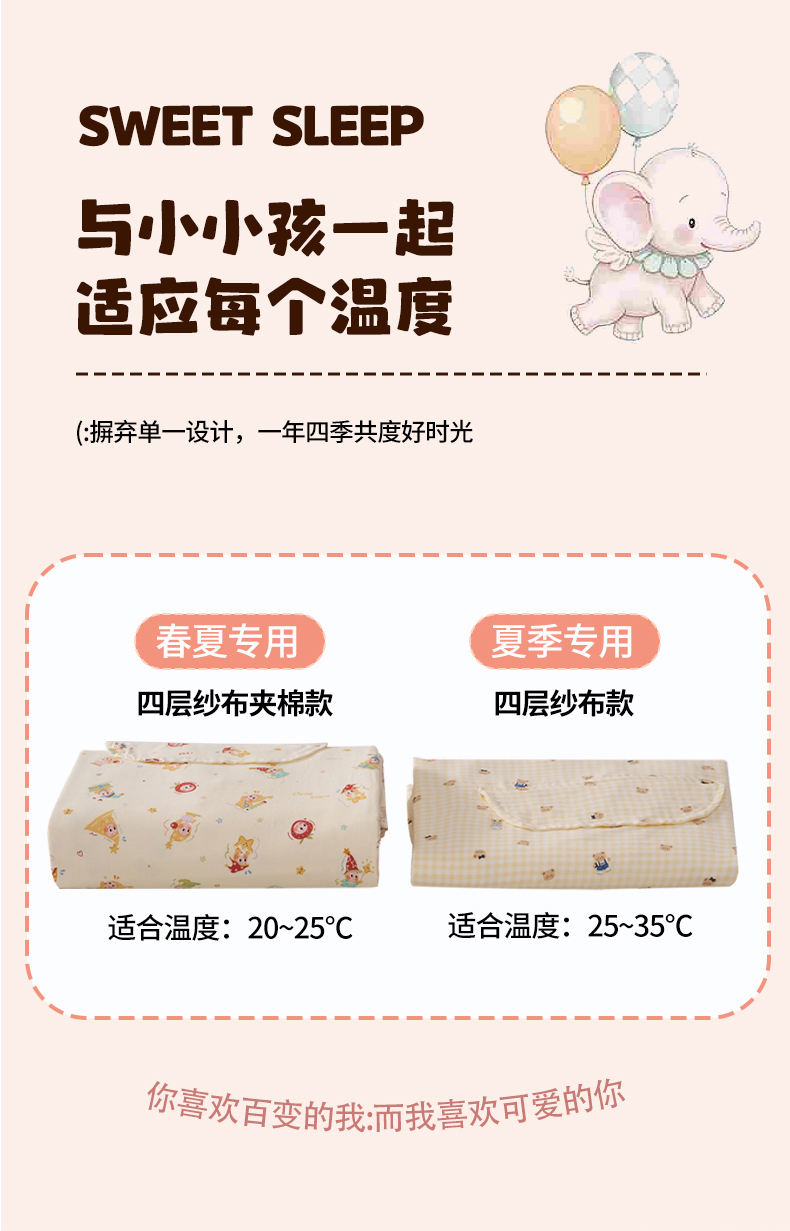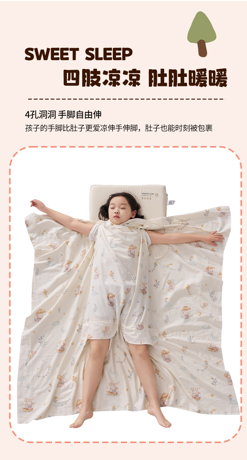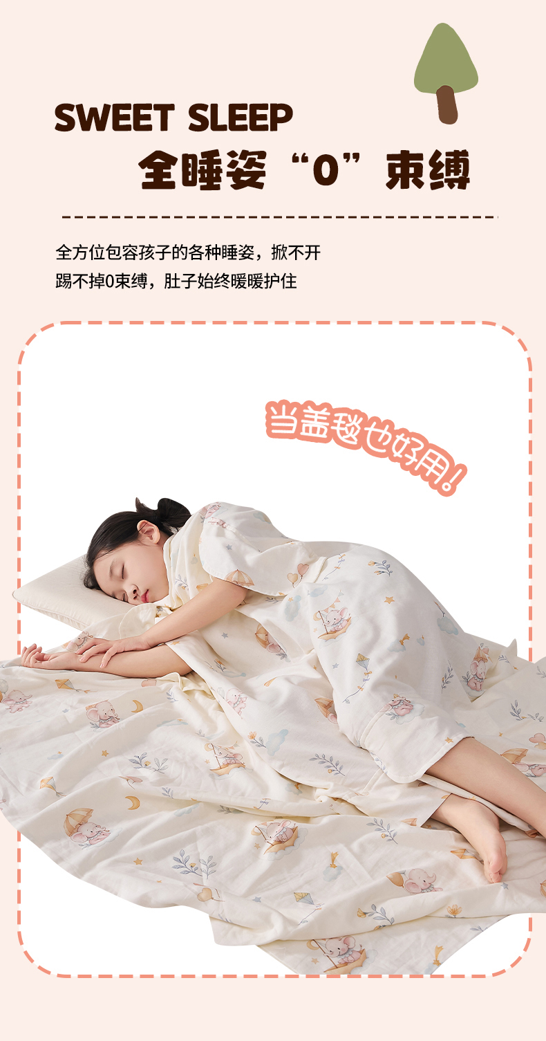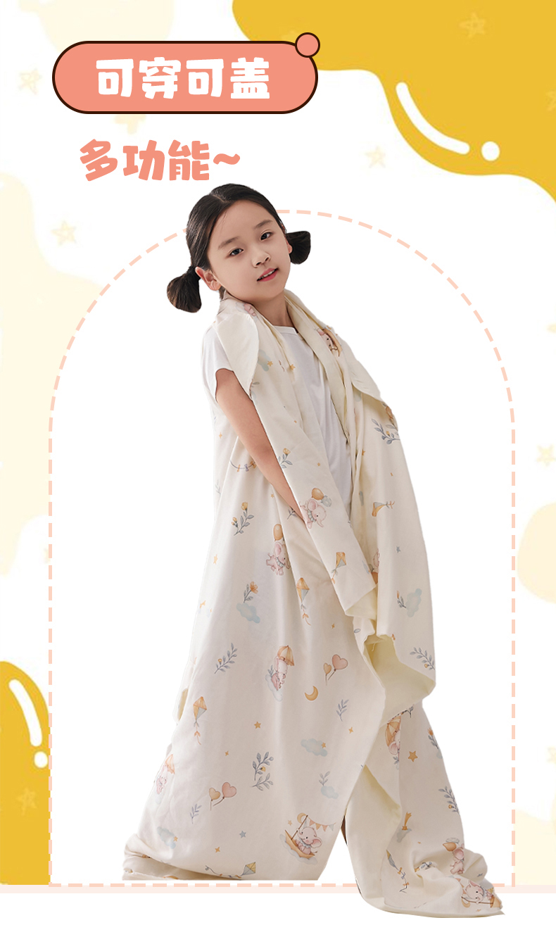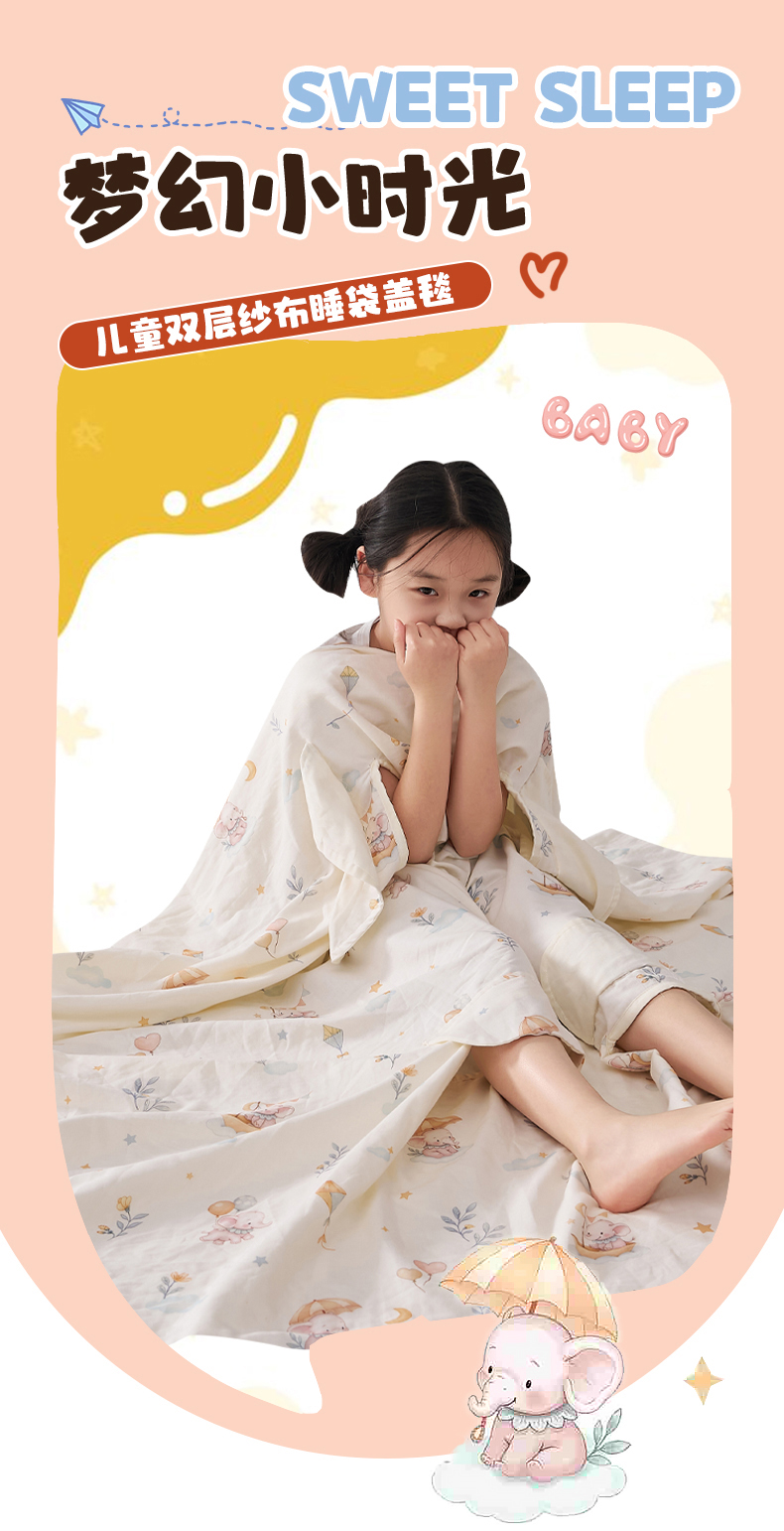 商品名称:暖阳 2026新款儿童双层纱布睡袋盖毯 睡袋-气球小象
