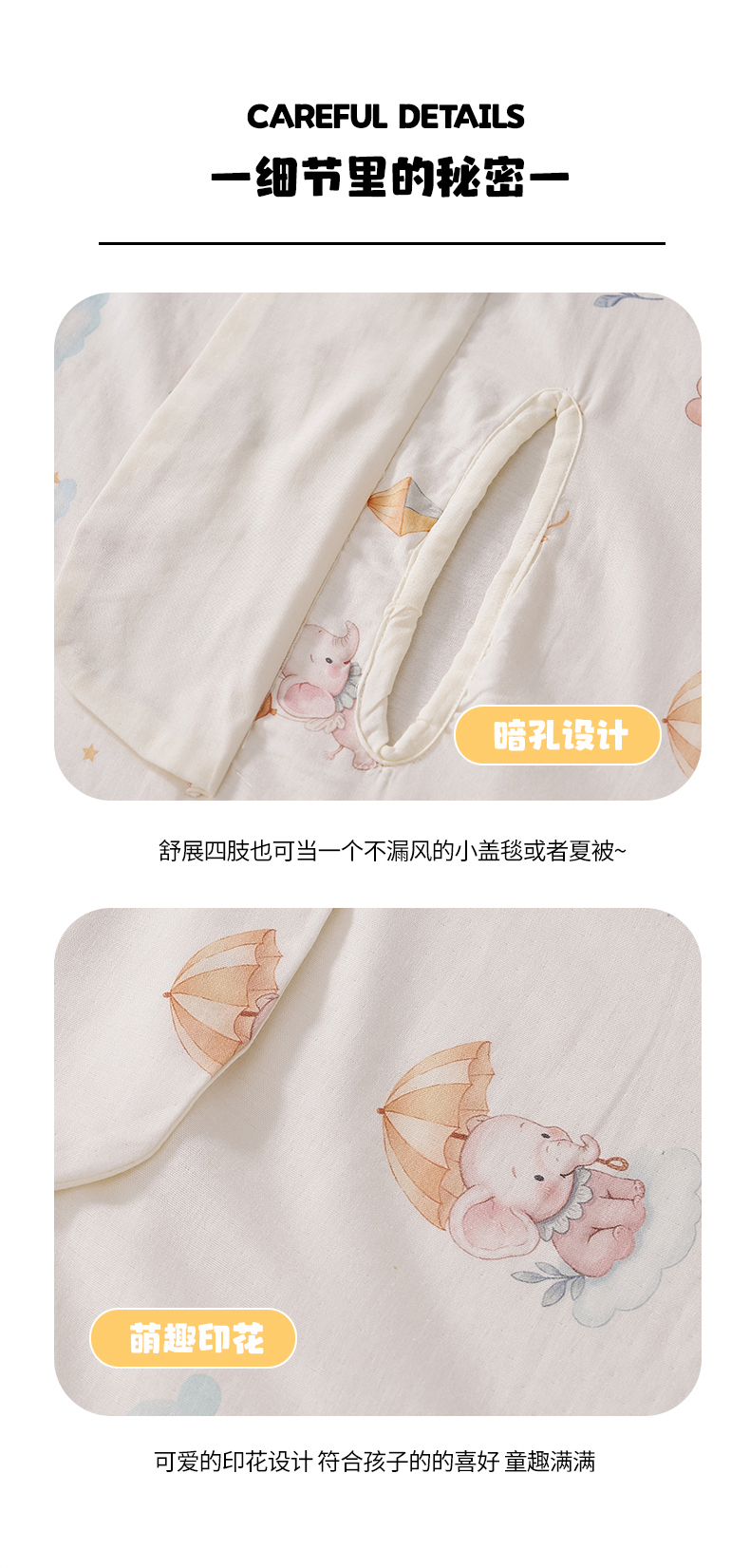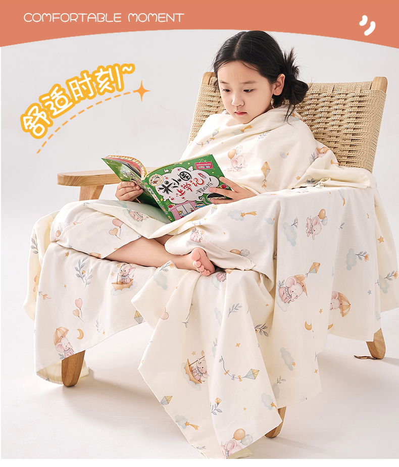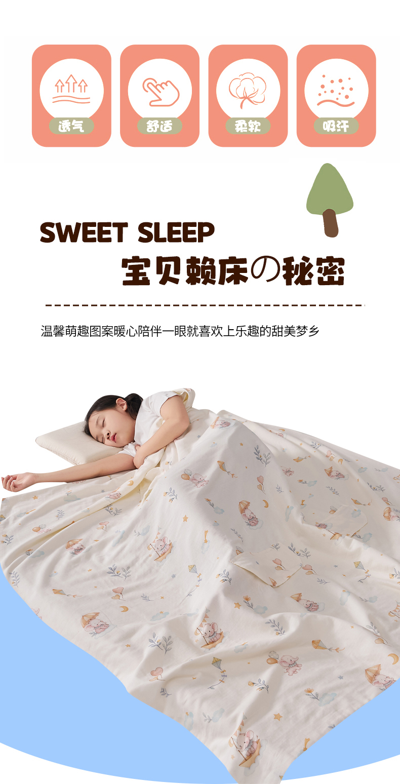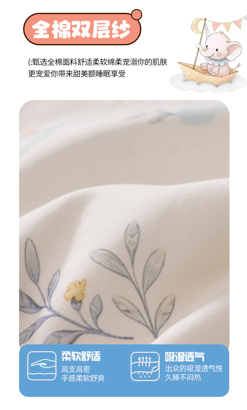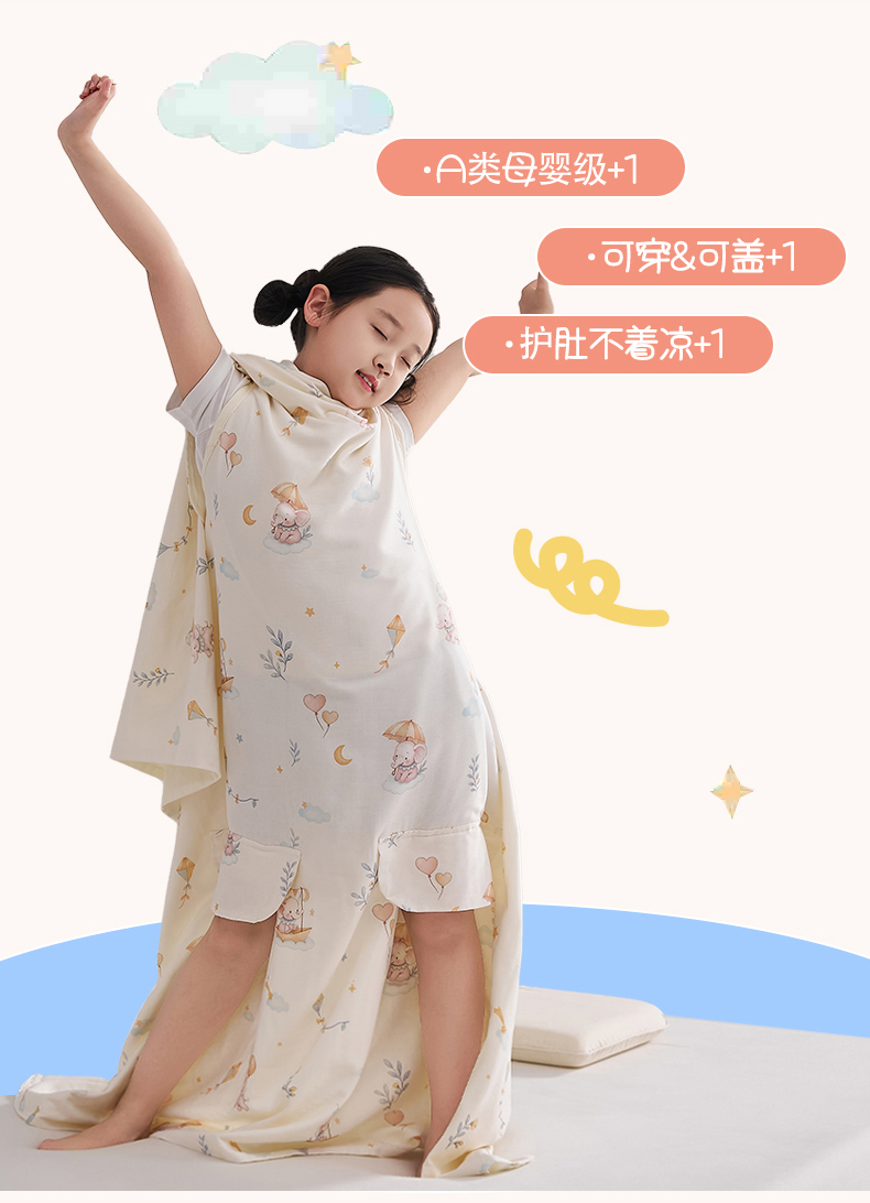 商品名称:暖阳 2026新款儿童双层纱布睡袋盖毯 睡袋-气球小象
