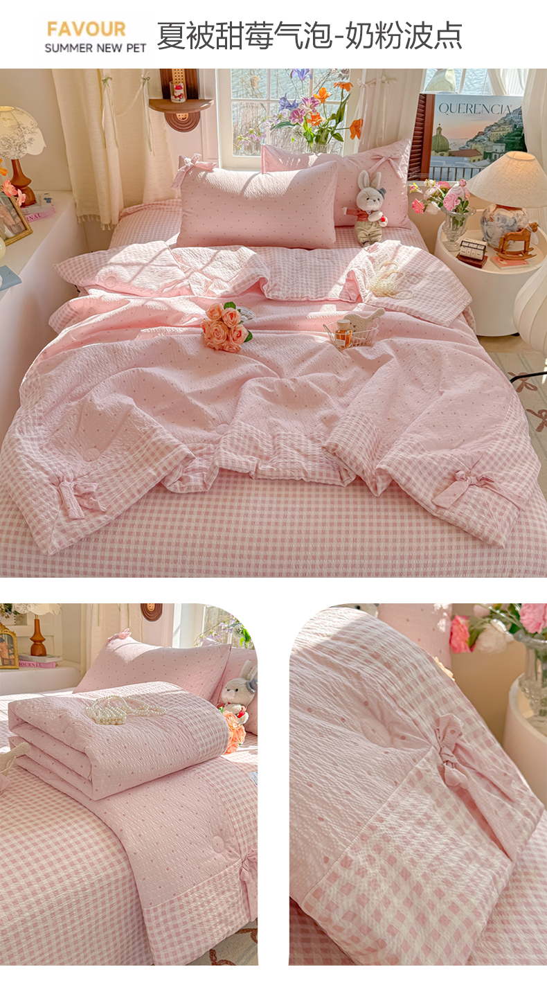 爱彼家纺 2026春夏新款提花泡芙棉拼角蝴蝶结软乎乎的撸猫感单夏被夏被四件套-甜莓气泡 组合图仅供参考不可下单