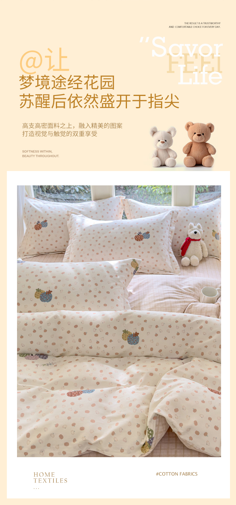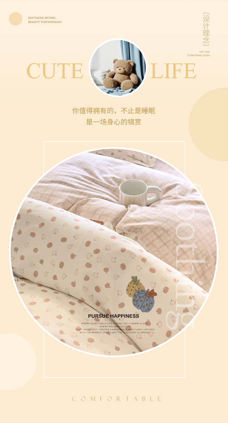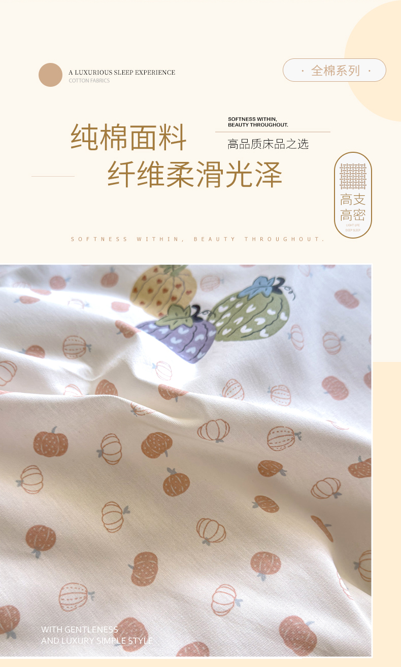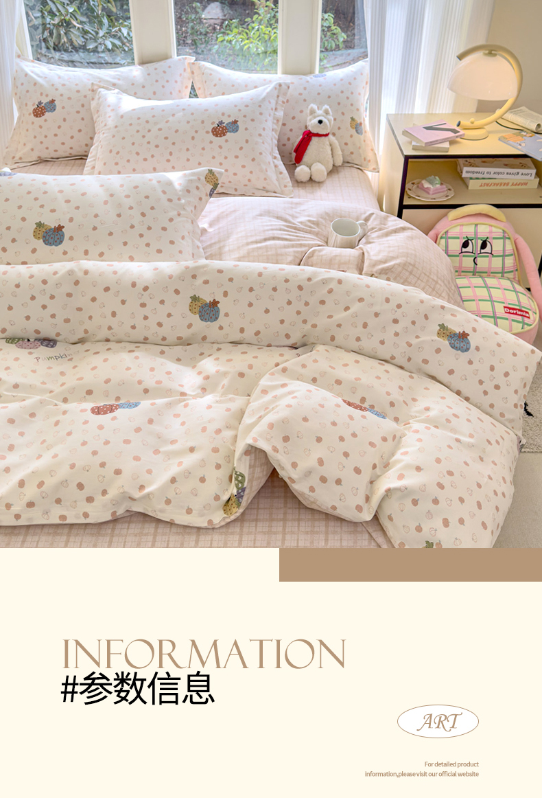 当前位置: 91家纺网 > 商品网购 > 床品套件 > 四件套 > 全棉普通四件套 > 洺兰家居 2026新款全棉纯棉13070小清新印花四件套 魔幻南瓜
