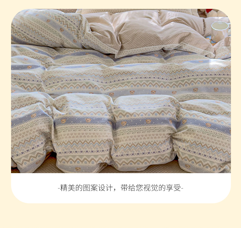 商品名称:洺兰家居 2026新款全棉纯棉13070小清新印花单被套被套单件 格纹小熊