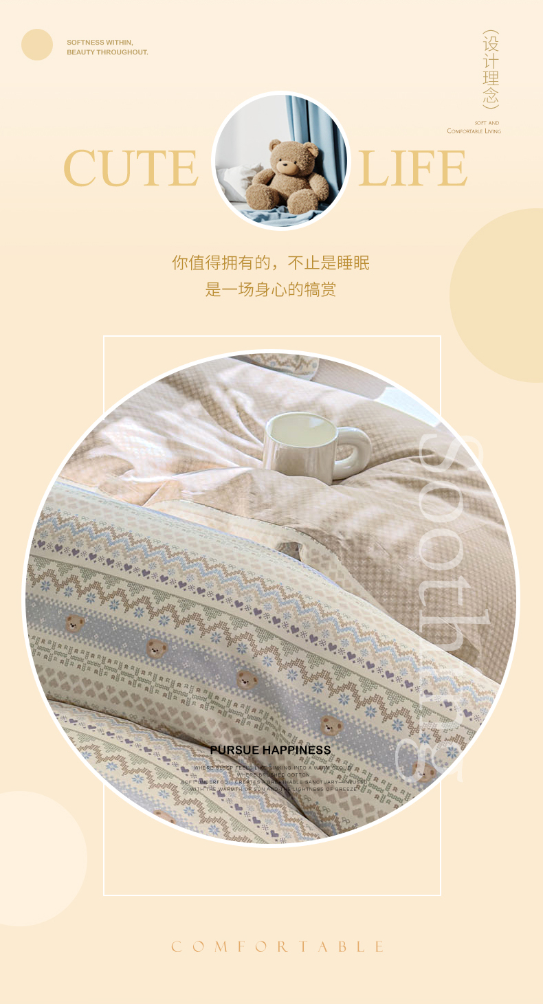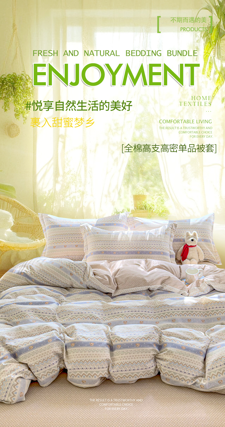 洺兰家居 2025新款13070全棉单被套 波波熊,波波熊