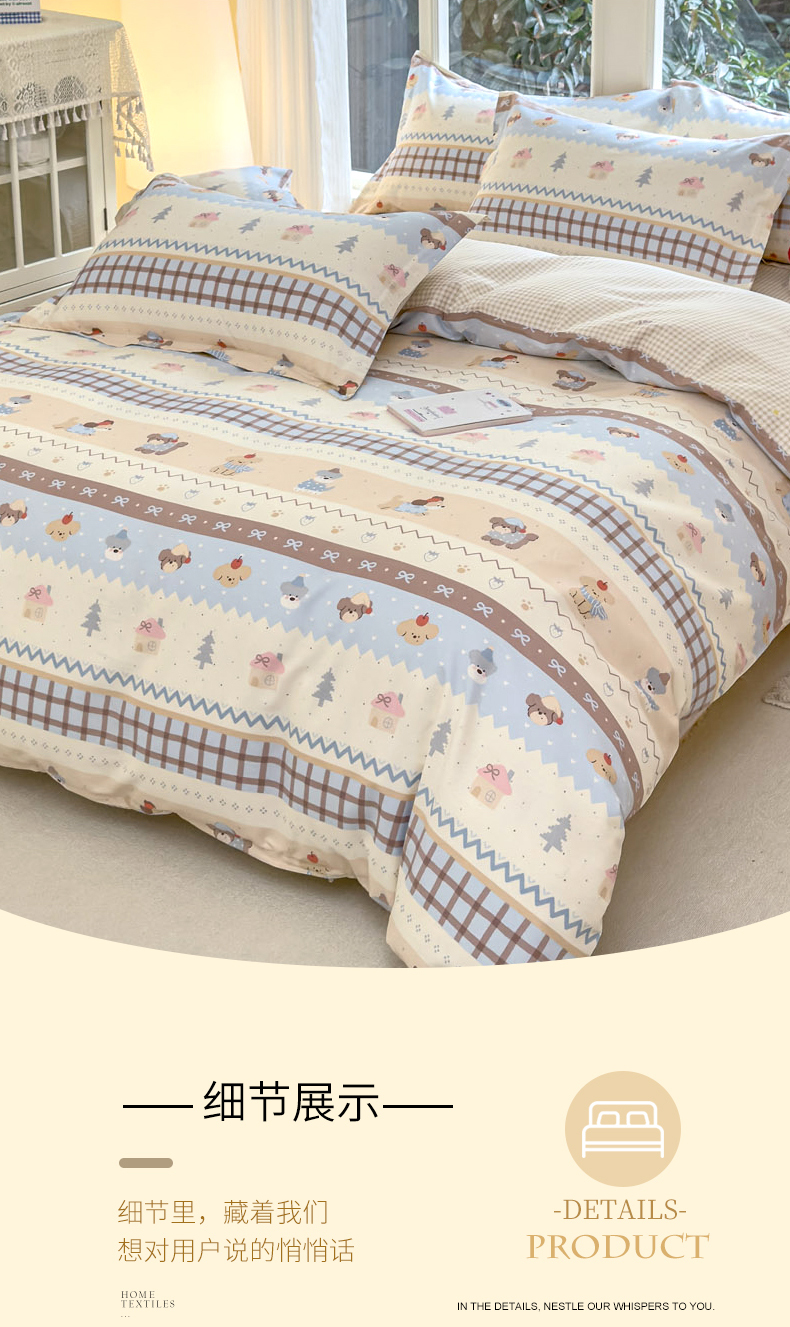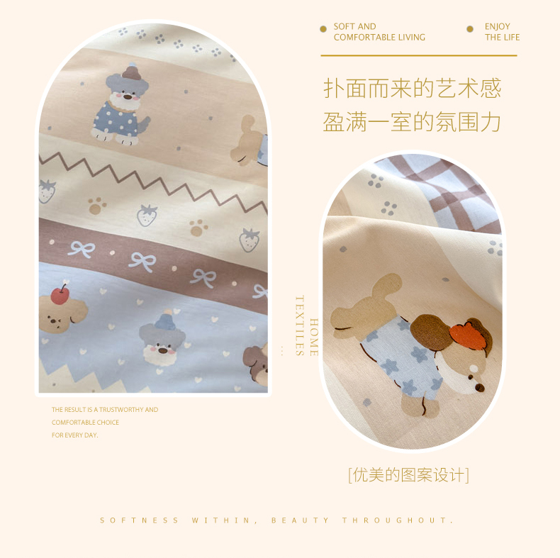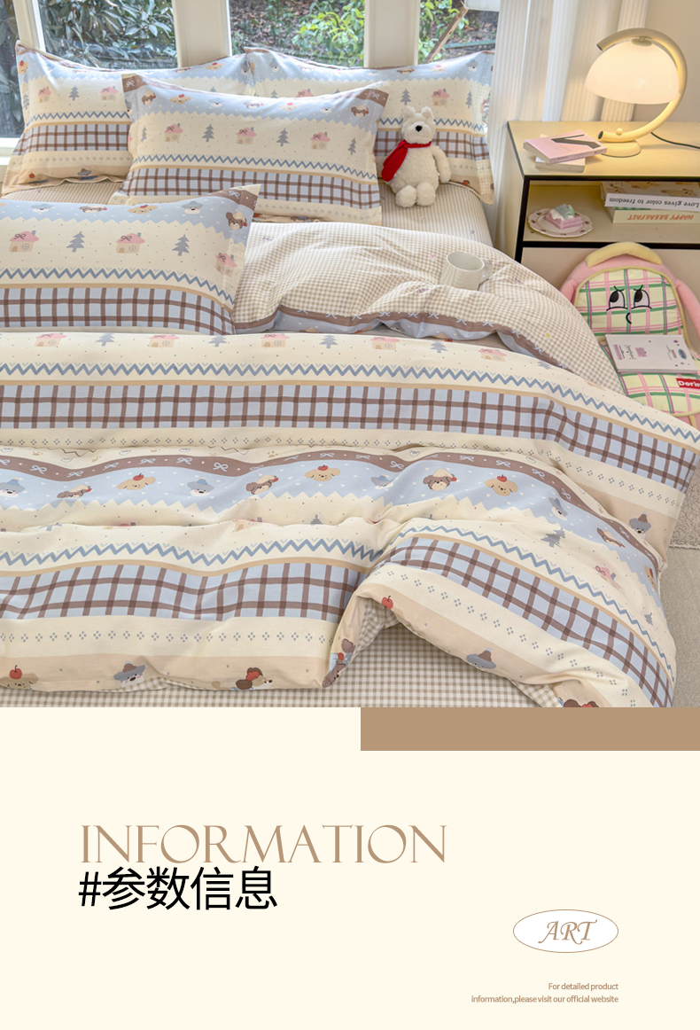 (总)洺兰家居 2026新款全棉纯棉13070小清新印花四件套,艾丽娅,疯狂小汽车,格纹小熊,狗狗日记,海岛假日,卡特,蓝调记忆,迷你小屋,魔幻南瓜,木马星梦,若兰,森林派对,童年派对,晚风细语,汪星人,小星星,星空奇遇,幸运四叶草,伊春园,优雅生活,栀子花