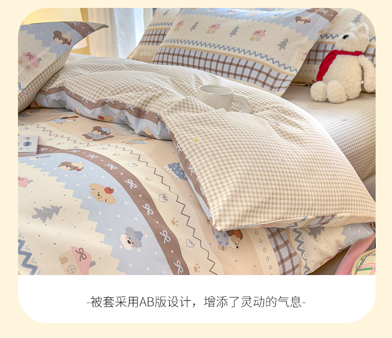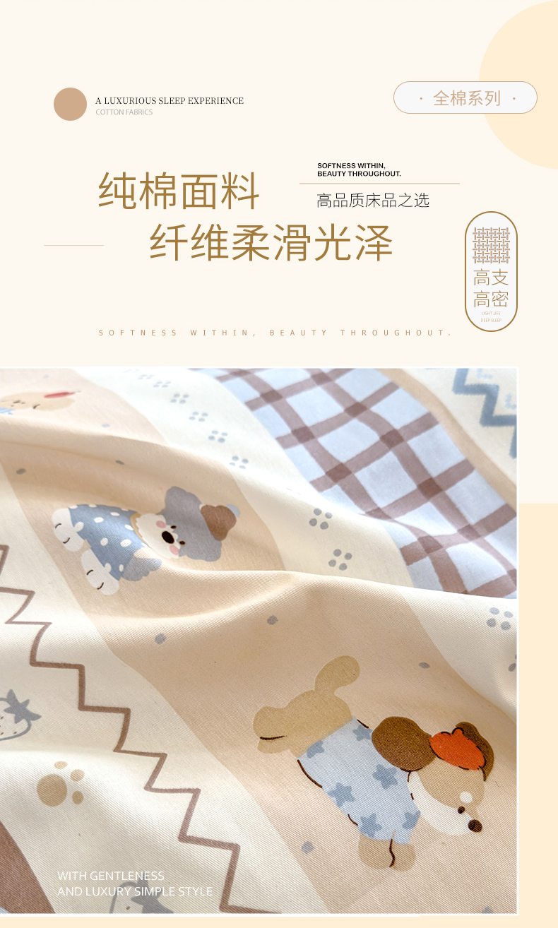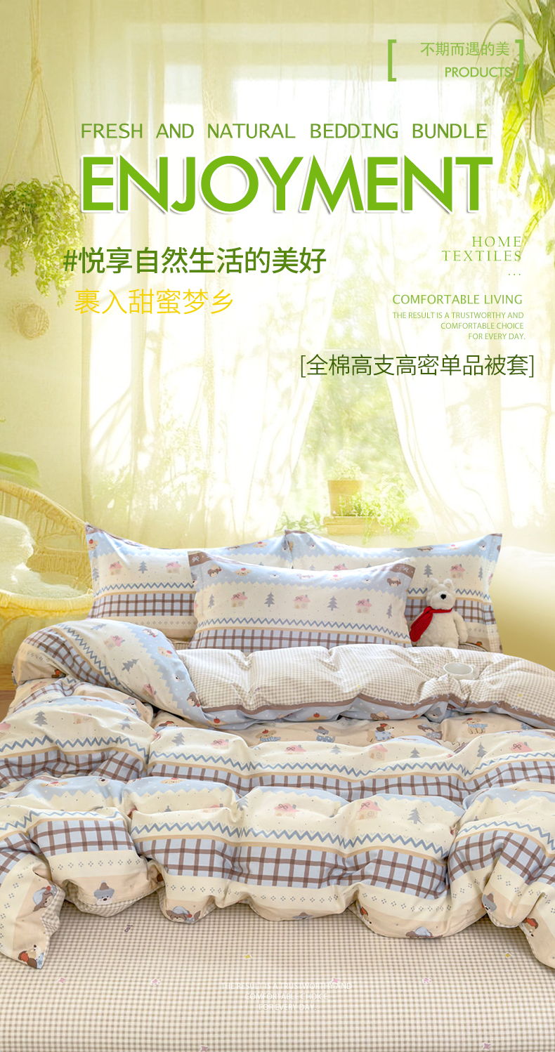 洺兰家居 2025新款13070全棉单被套 波波熊,波波熊