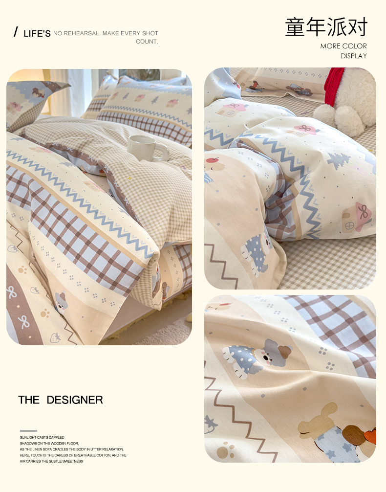 商品名称:洺兰家居 2026新款全棉纯棉13070小清新印花单被套被套单件 童年派对
