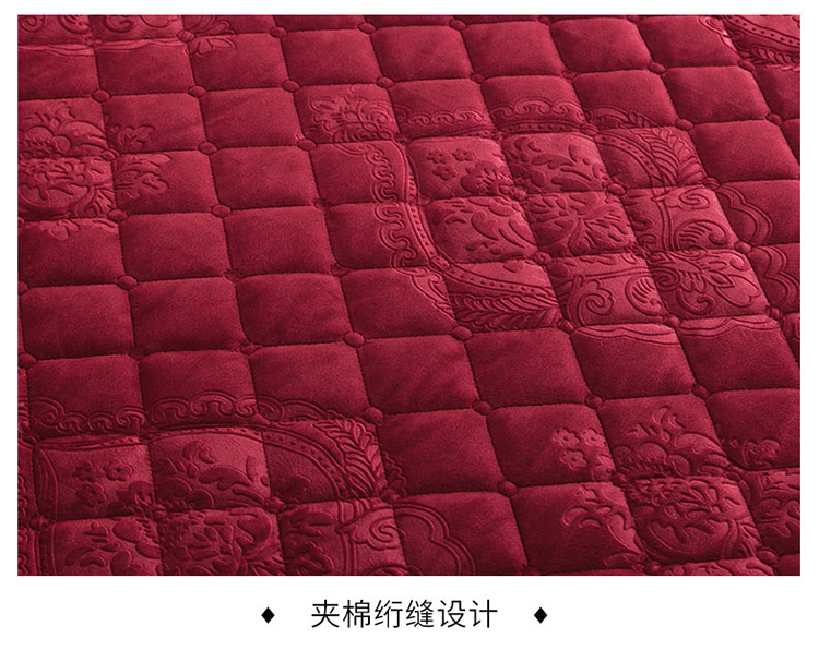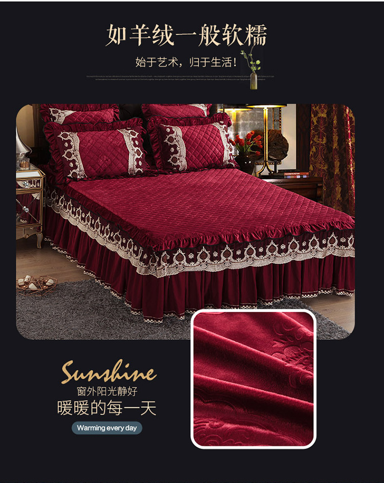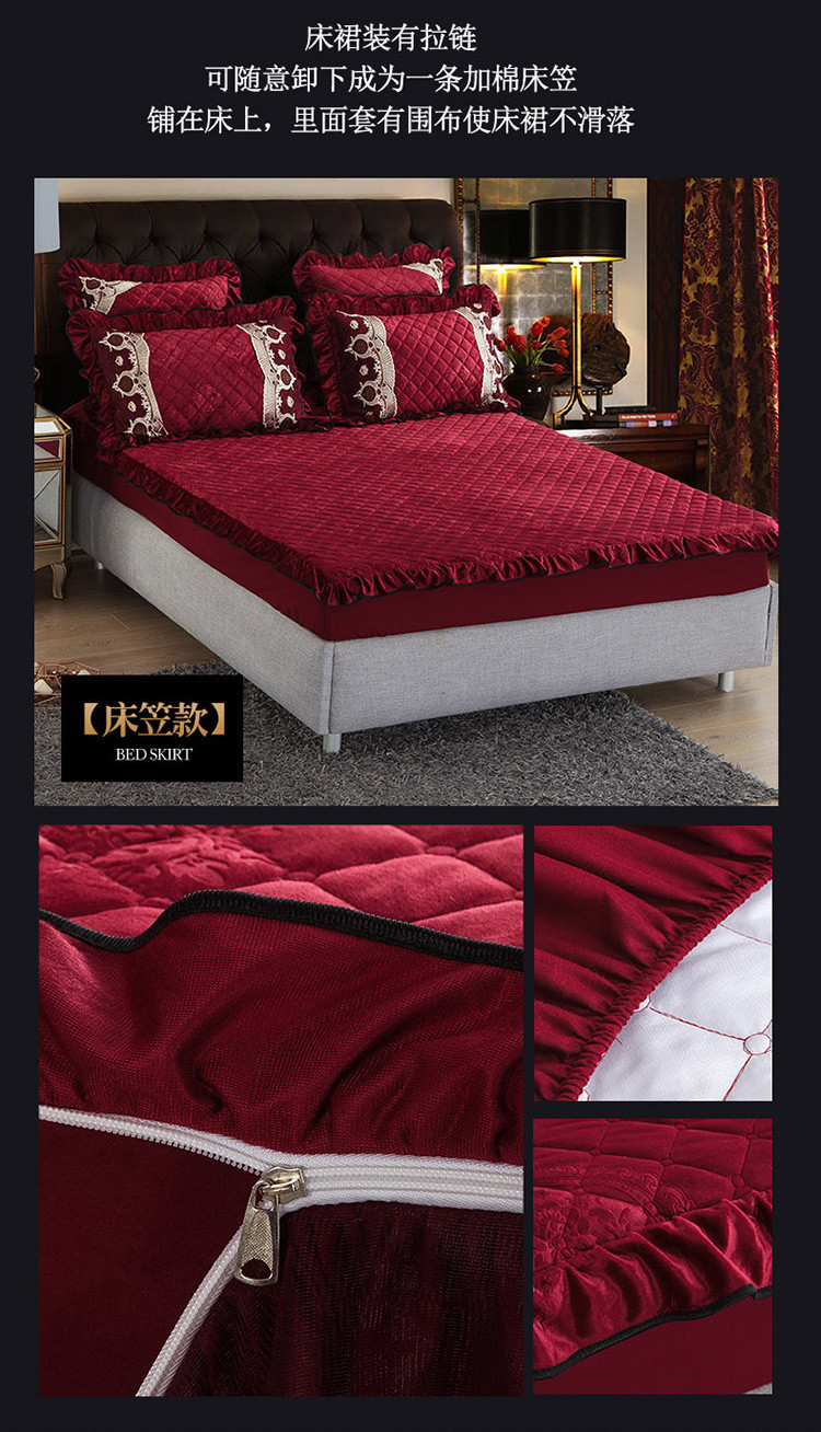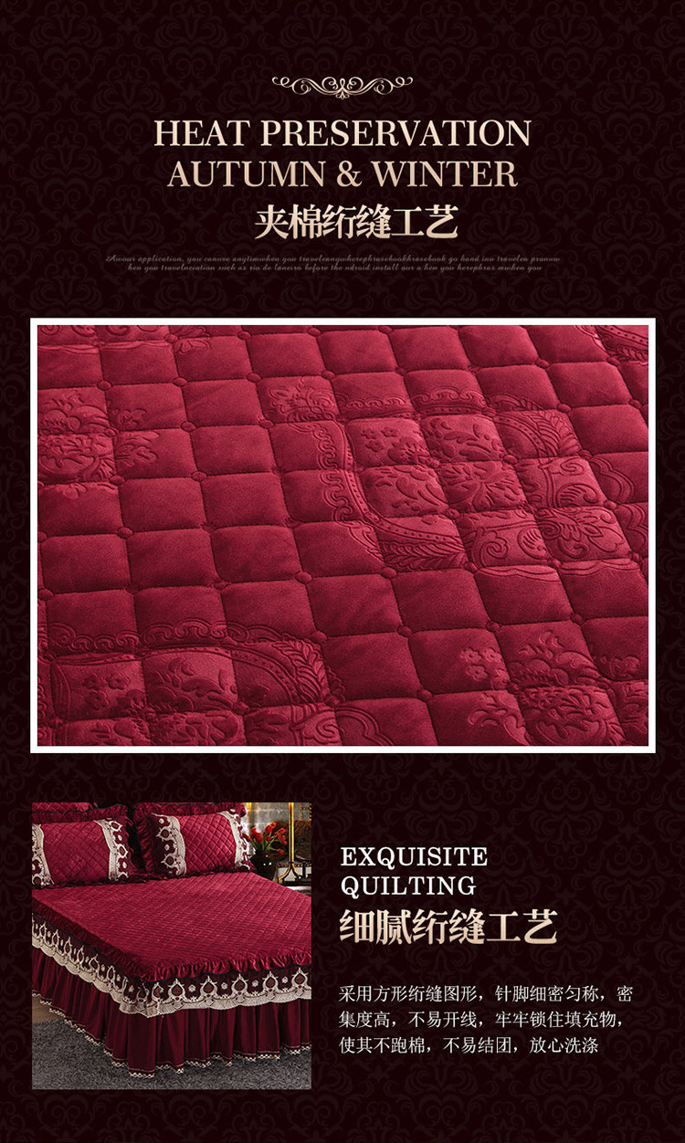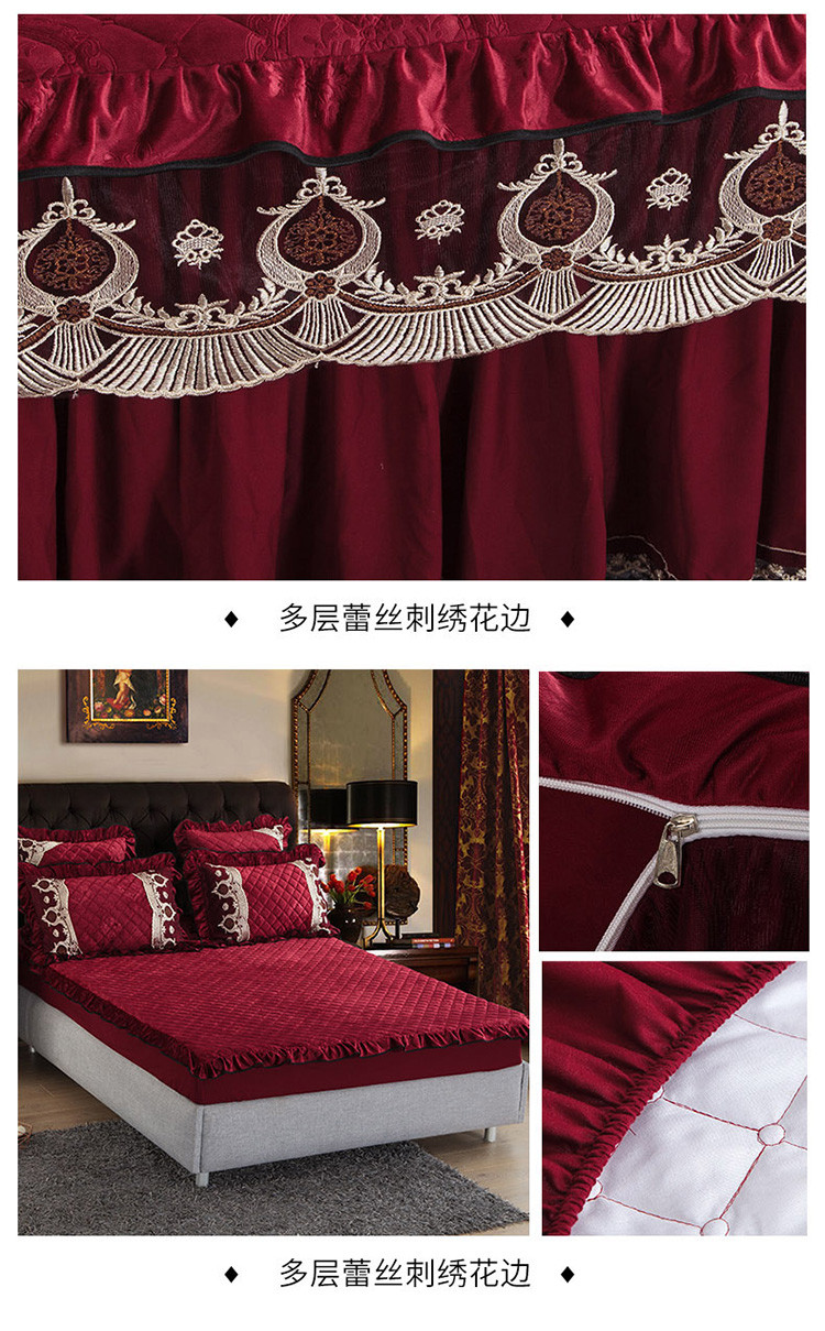 商品名称:兴美佳水晶绒压花拉链款单床裙-豪庭盛世 酒红色