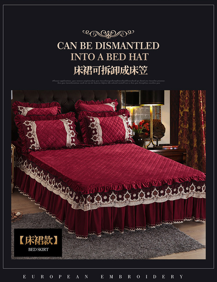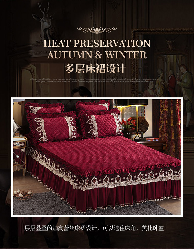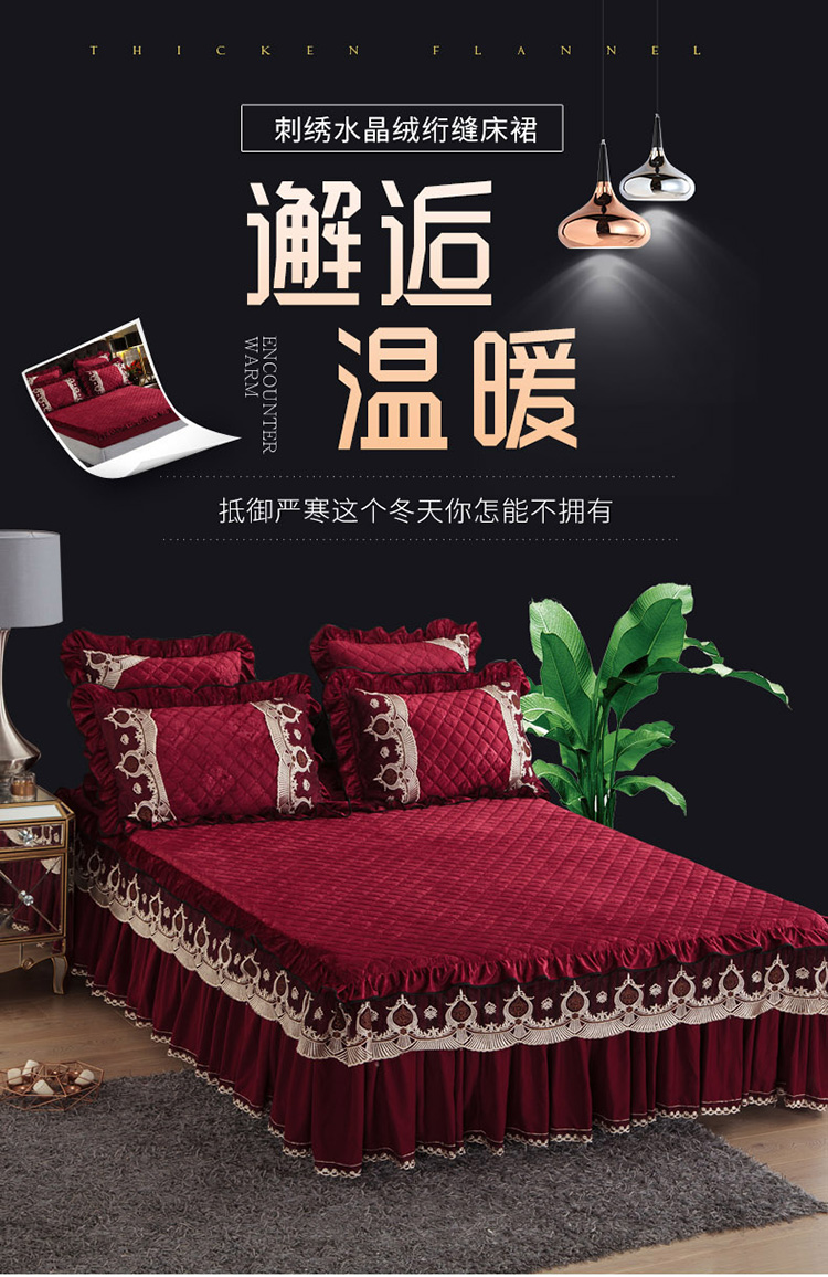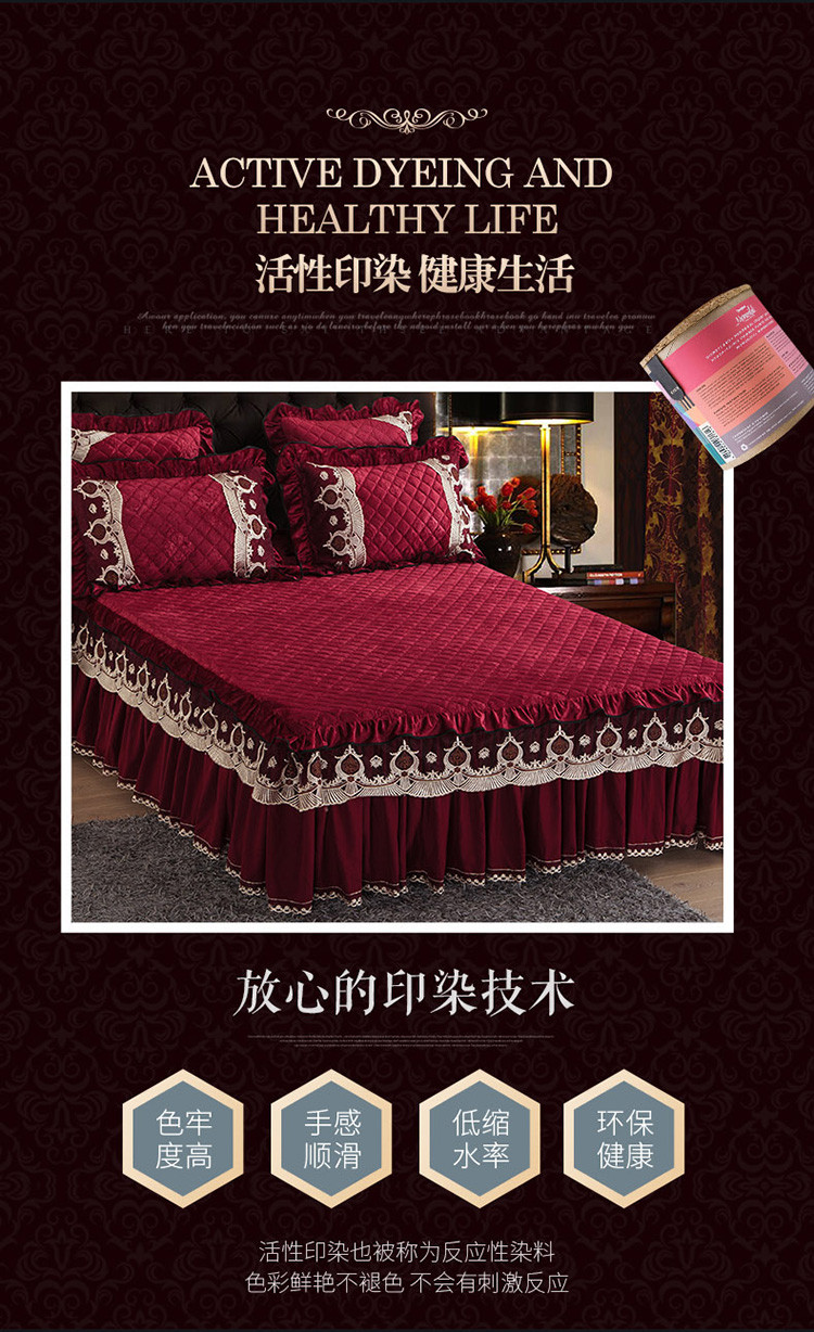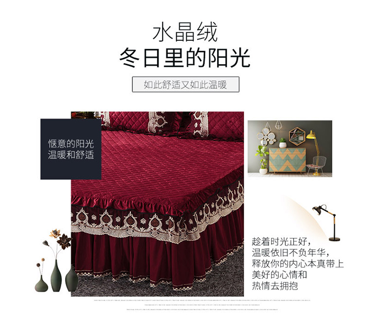 商品名称:兴美佳水晶绒压花拉链款单床裙-豪庭盛世 酒红色