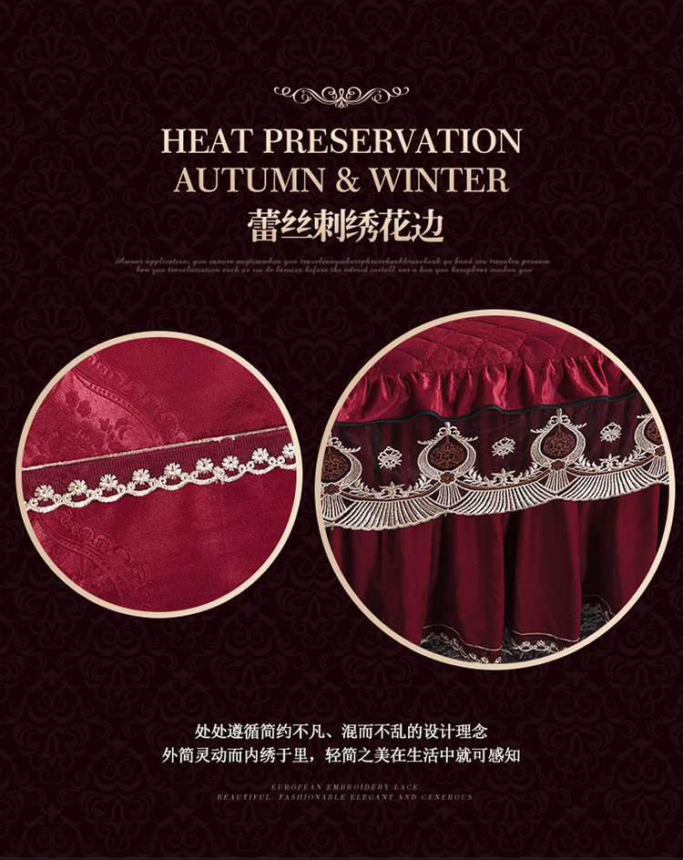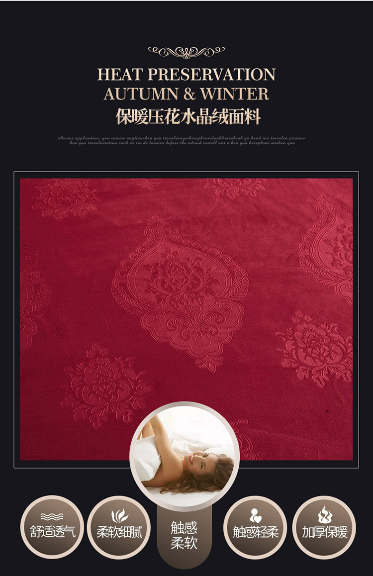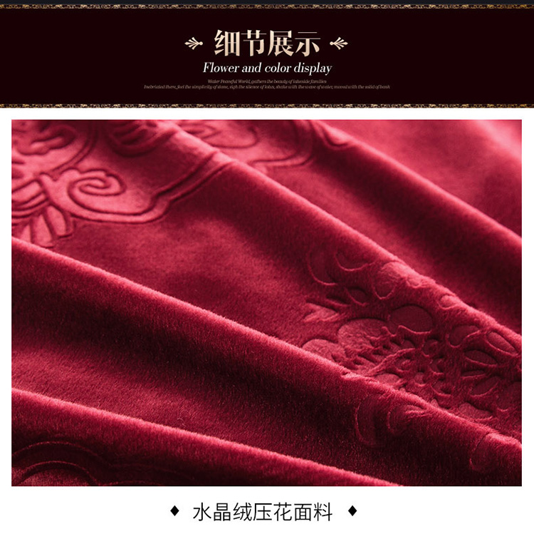 兴美佳水晶绒压花拉链款单床裙-豪庭盛世 酒红色