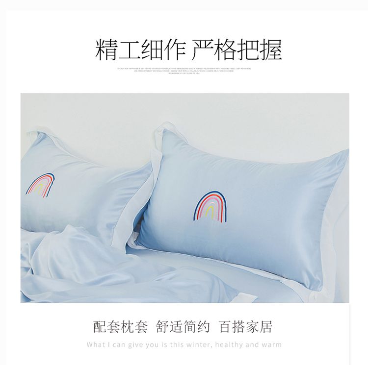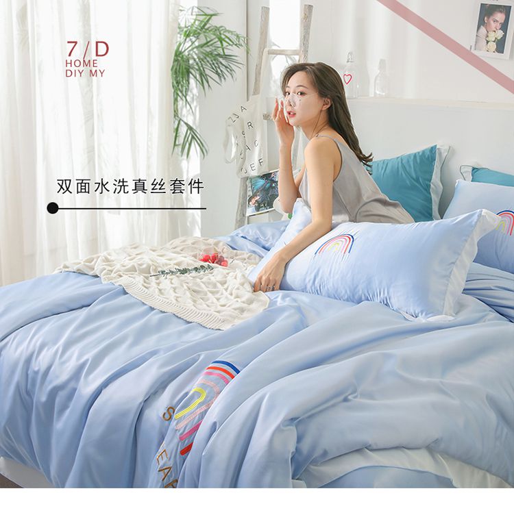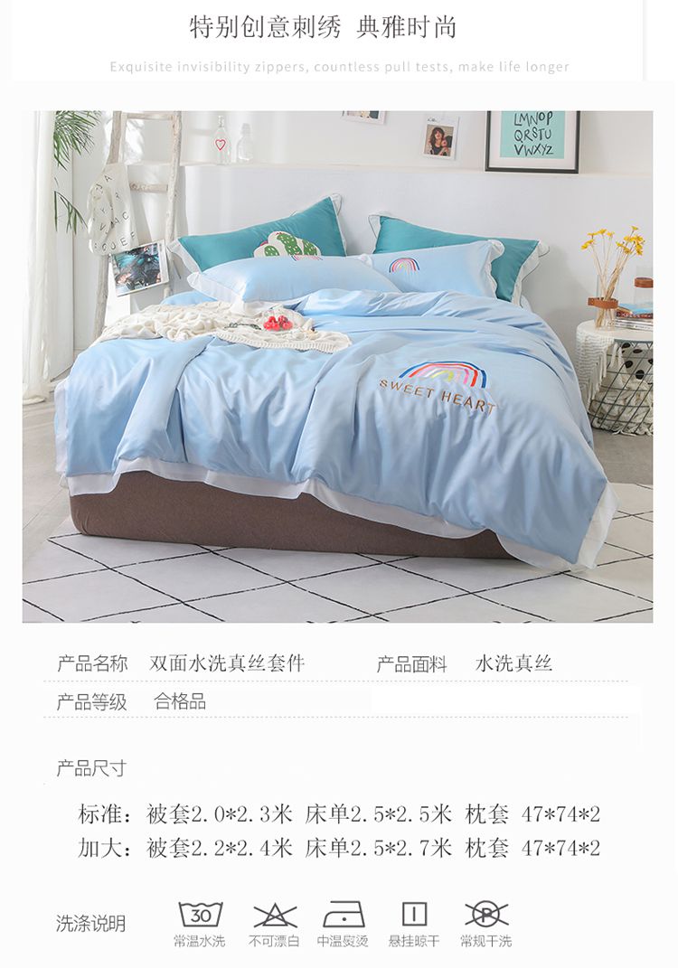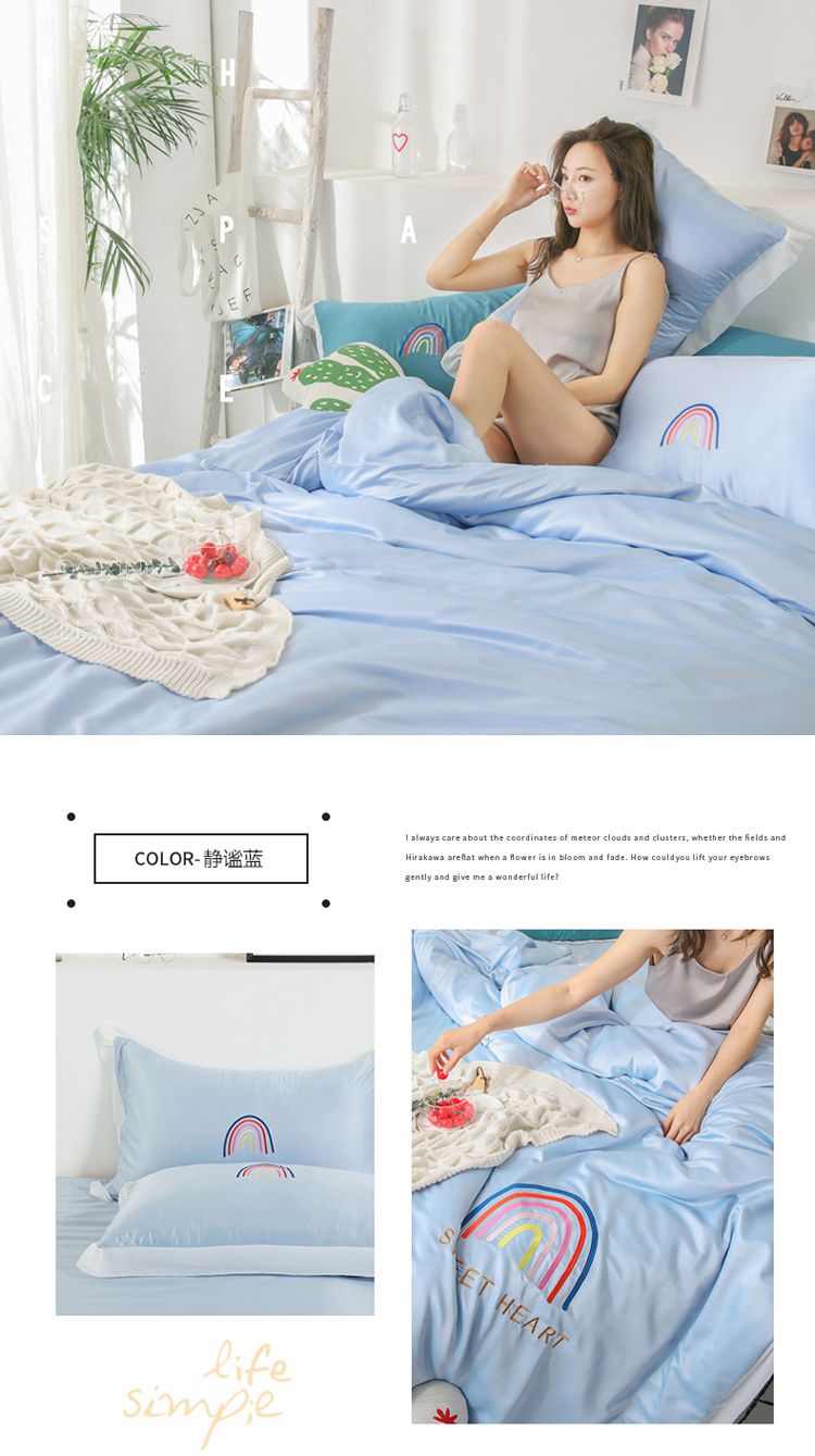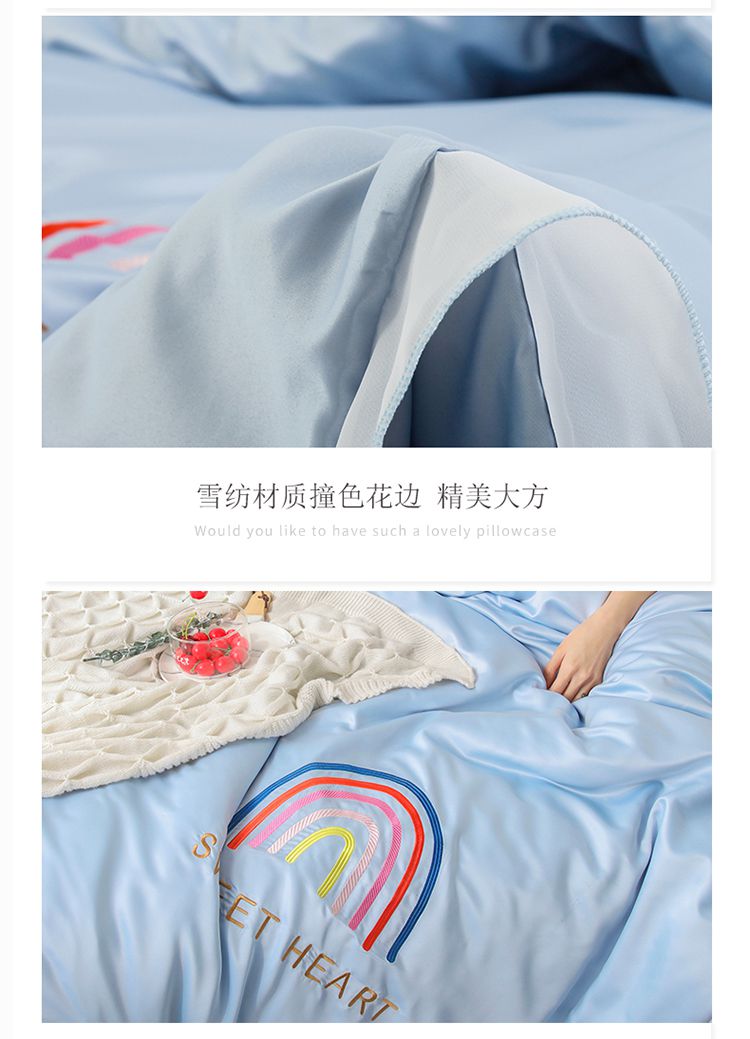商品名称:博纳 2020新款双面水洗真丝四件套雪纺绣花彩虹之约静谧蓝