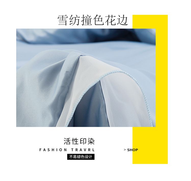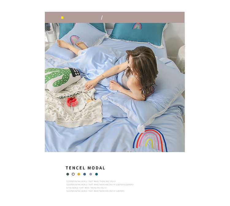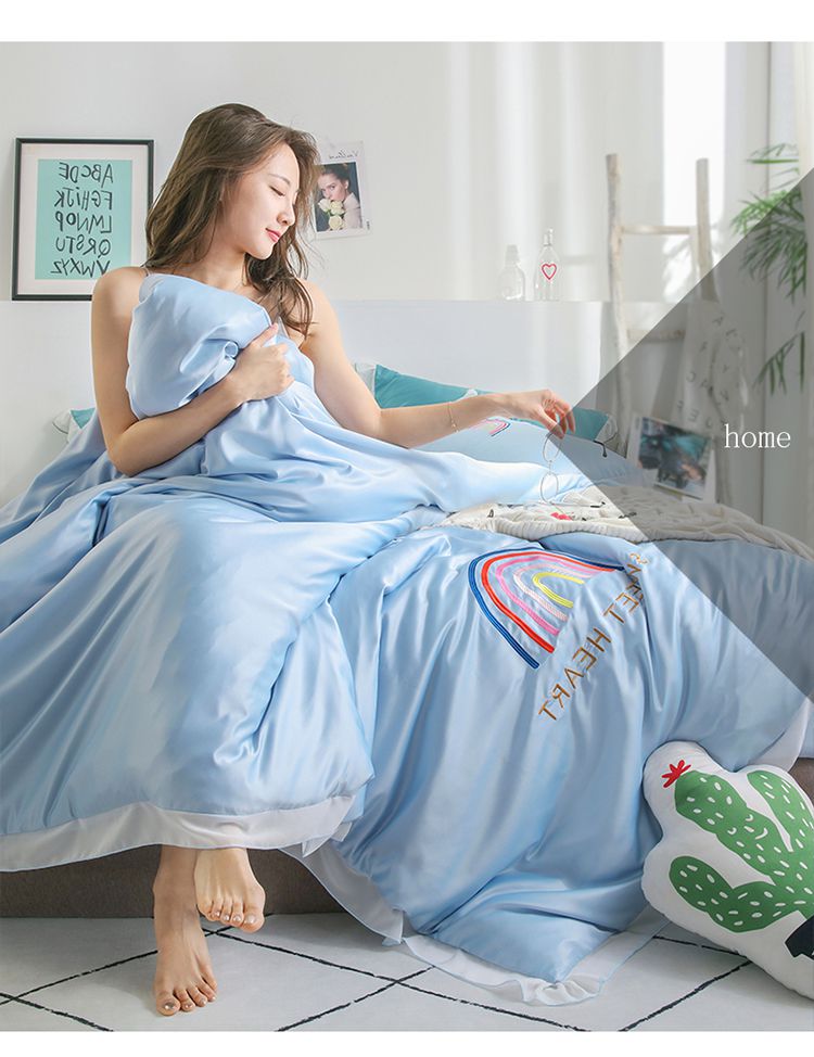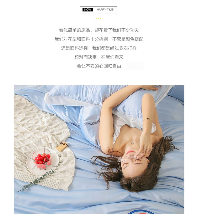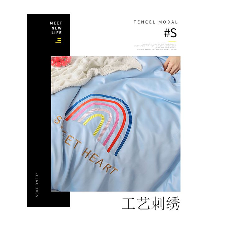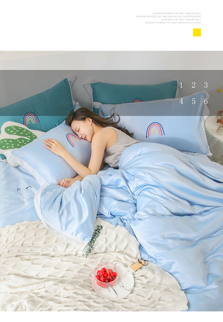 商品名称:博纳 2020新款双面水洗真丝四件套雪纺绣花彩虹之约静谧蓝