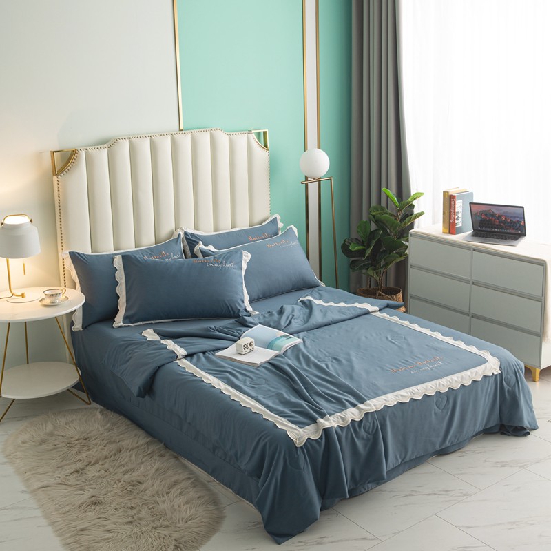 (总)安妮家居 2021新款法式仙女风水洗刺绣夏被四件套