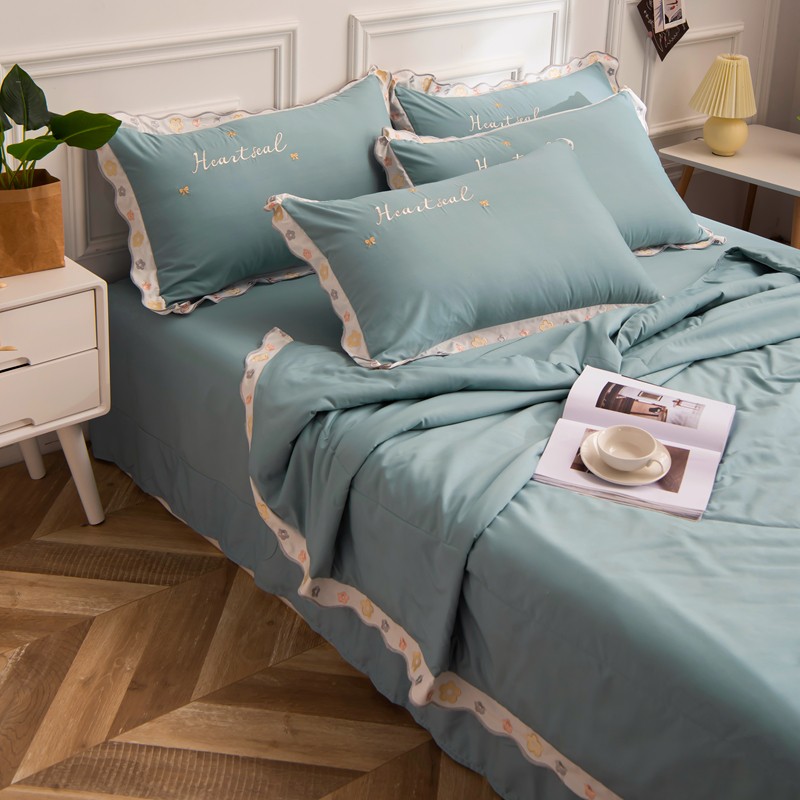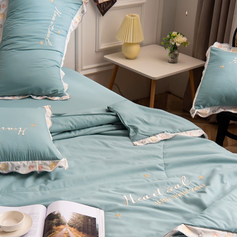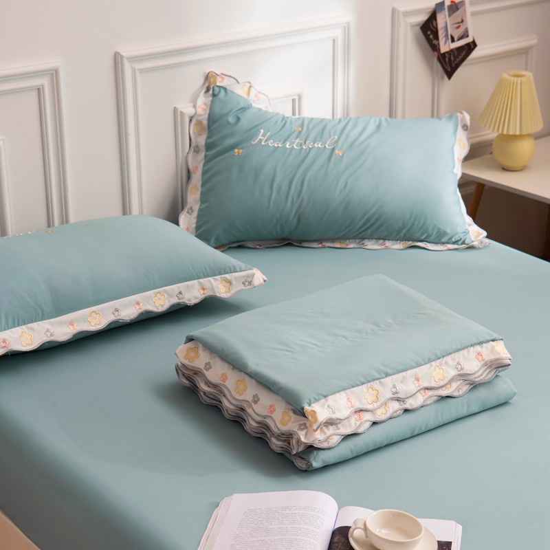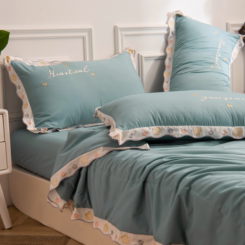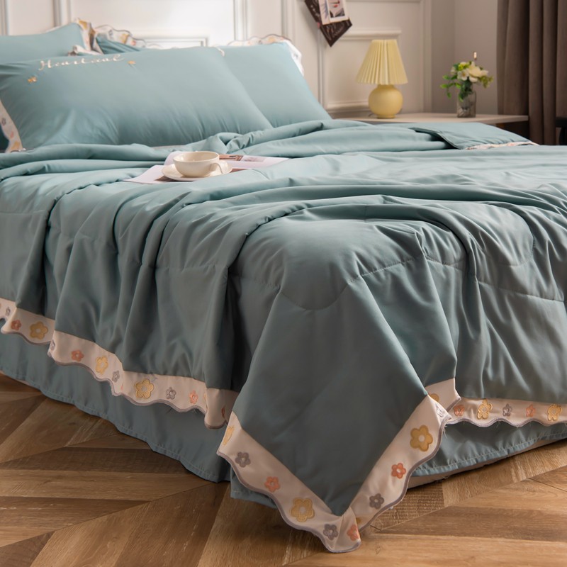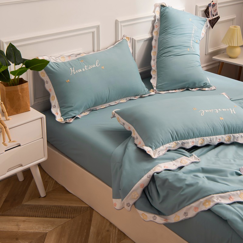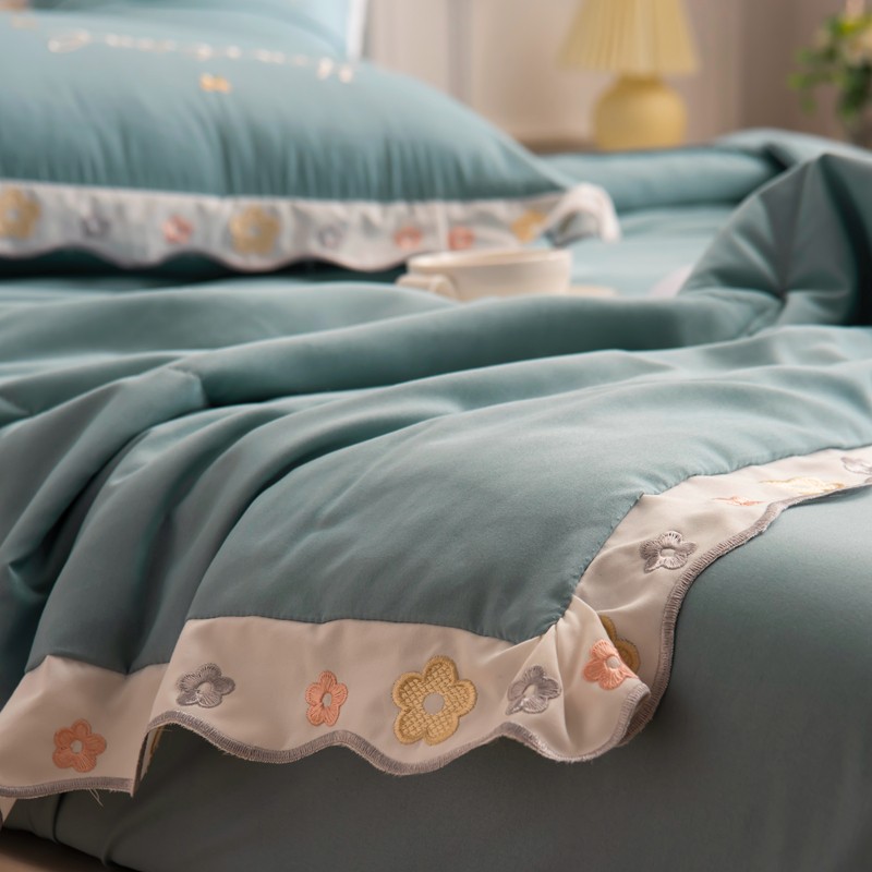 商品名称:安妮家居 2021新款泫雅风水洗刺绣夏被四件套 宾利蓝