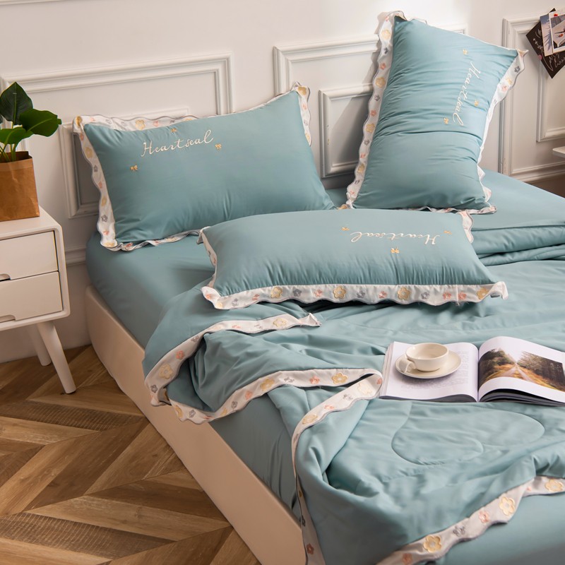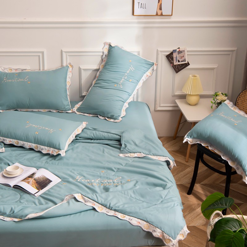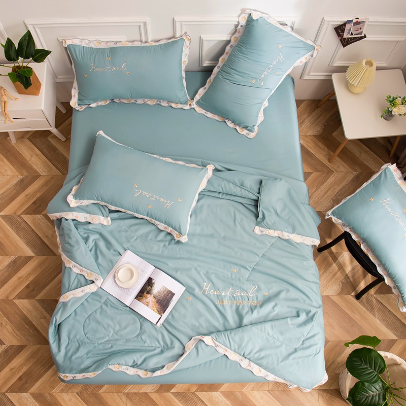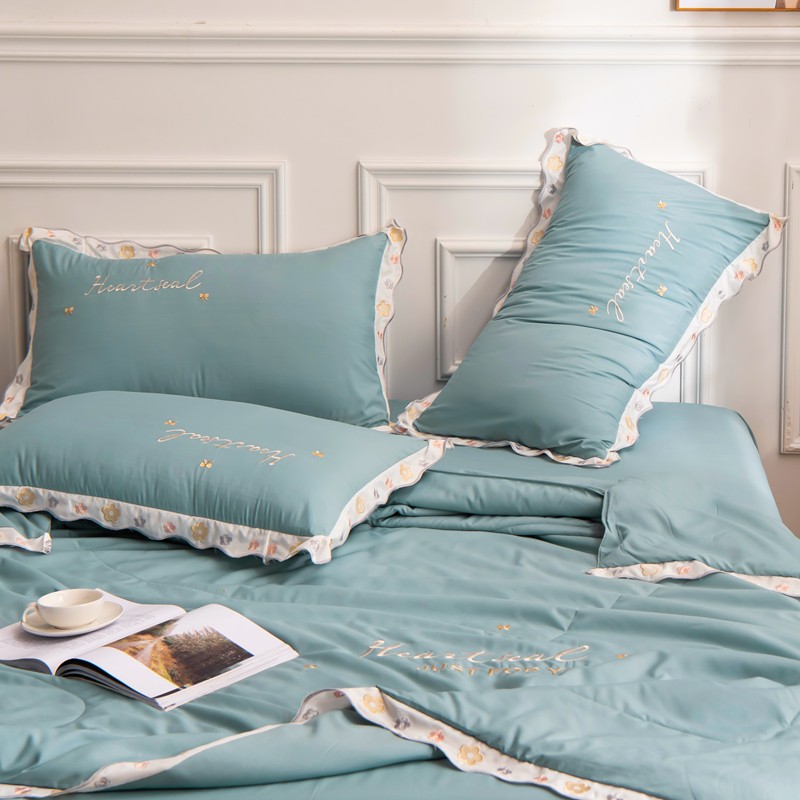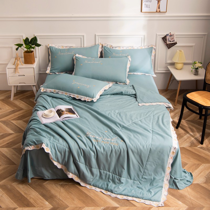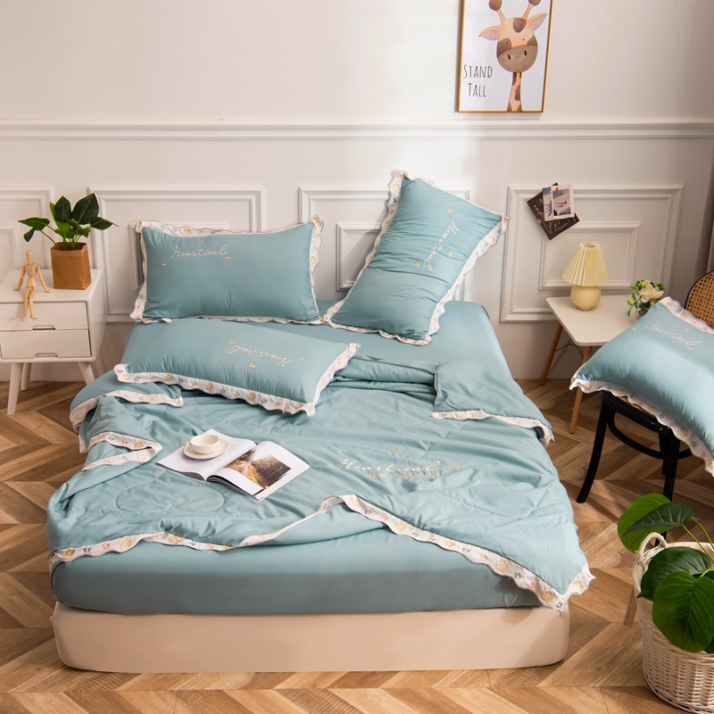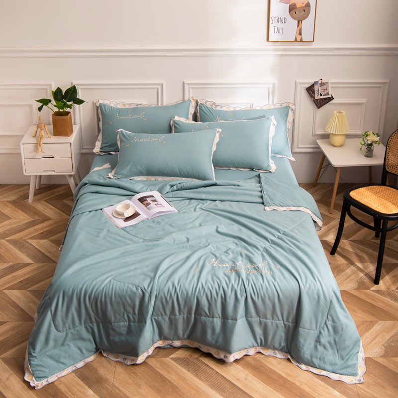 商品名称:安妮家居 2021新款泫雅风水洗刺绣夏被四件套 宾利蓝