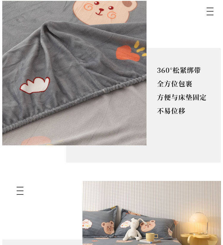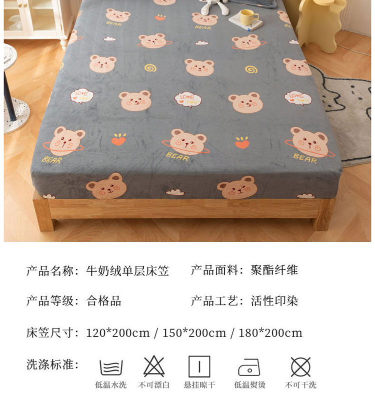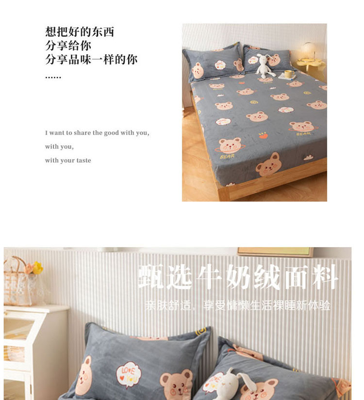 商品名称:梦家居 2021新款秋冬牛奶绒床笠单品 可爱小熊