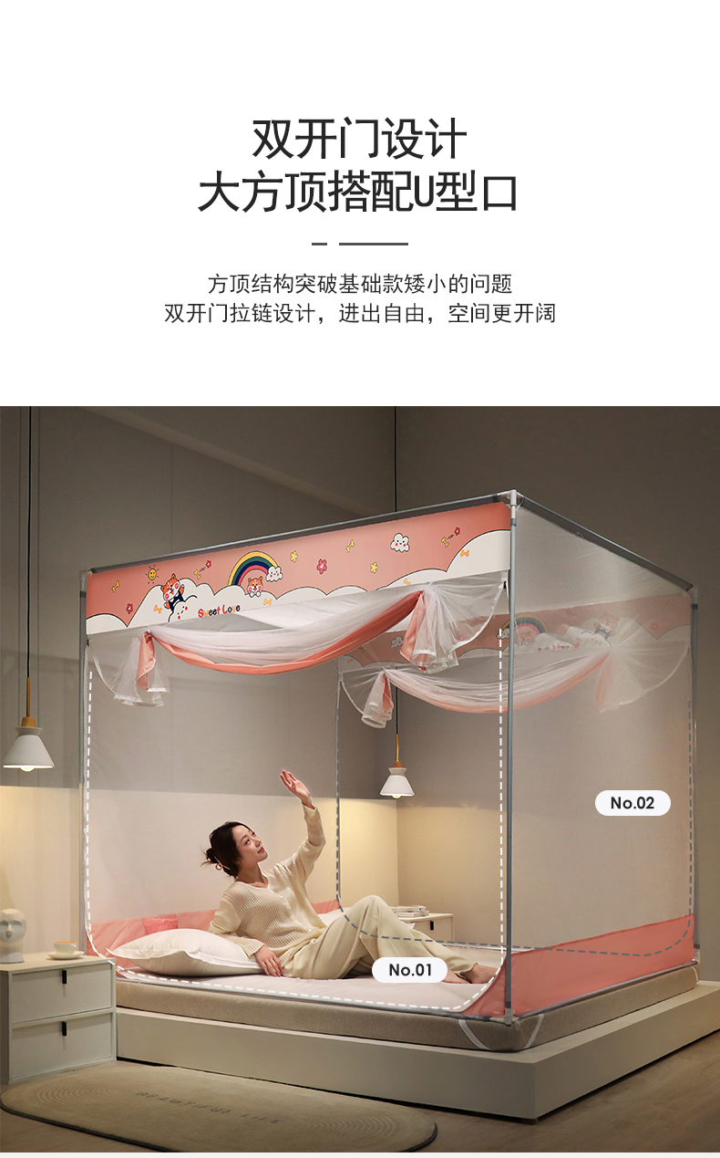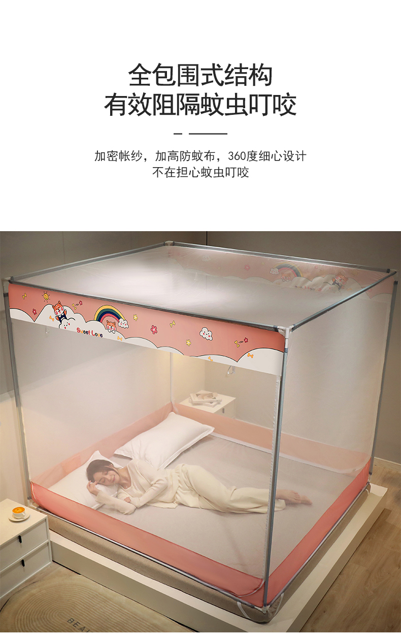 (总)佳梦家纺 2026新款双开门防尘顶免安装蚊帐,防尘顶吉米熊,防尘顶橘猫蓝,防尘顶柒猫粉,防尘顶时空宇航,防尘顶紫萌兔