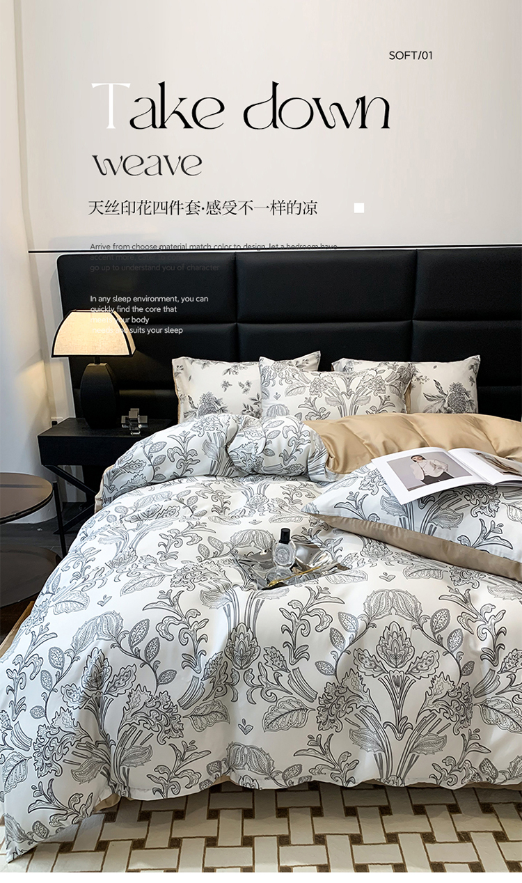 (总)澳萝拉 2023新款天丝印花四件套,芳馨,菲扬,江夏,恋馨,柠染-粉,浅语初开-米,叶飘,月韵