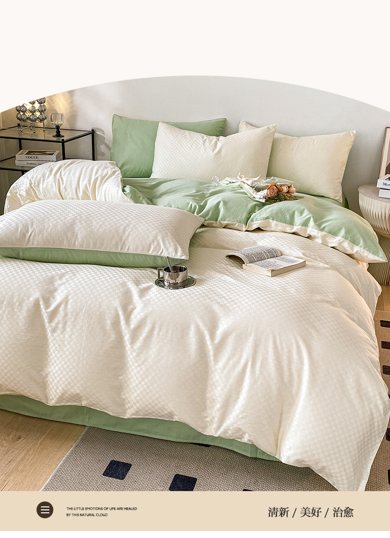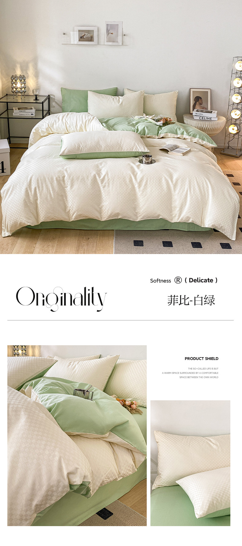 当前位置: 91家纺网 > 商品网购 > 床品套件 > 四件套 > 全棉普通四件套 > 涵宸家纺 2023新款全棉提花菲比系列四件套 菲比-白绿