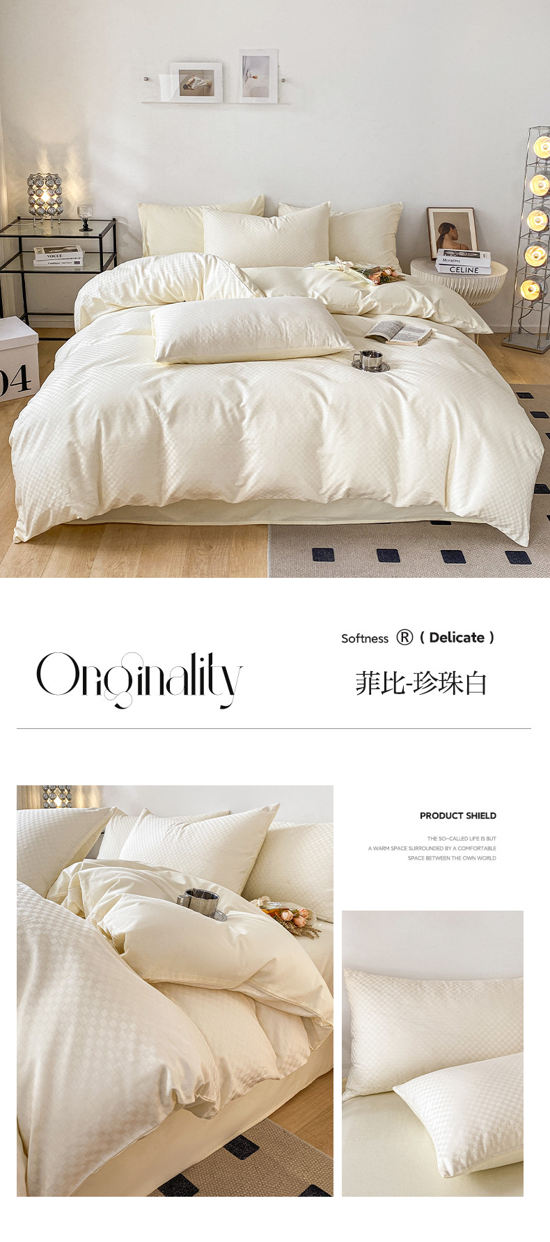 当前位置: 91家纺网 > 商品网购 > 床品套件 > 四件套 > 全棉普通四件套 > 涵宸家纺 2023新款全棉提花菲比系列四件套 菲比-珍珠白