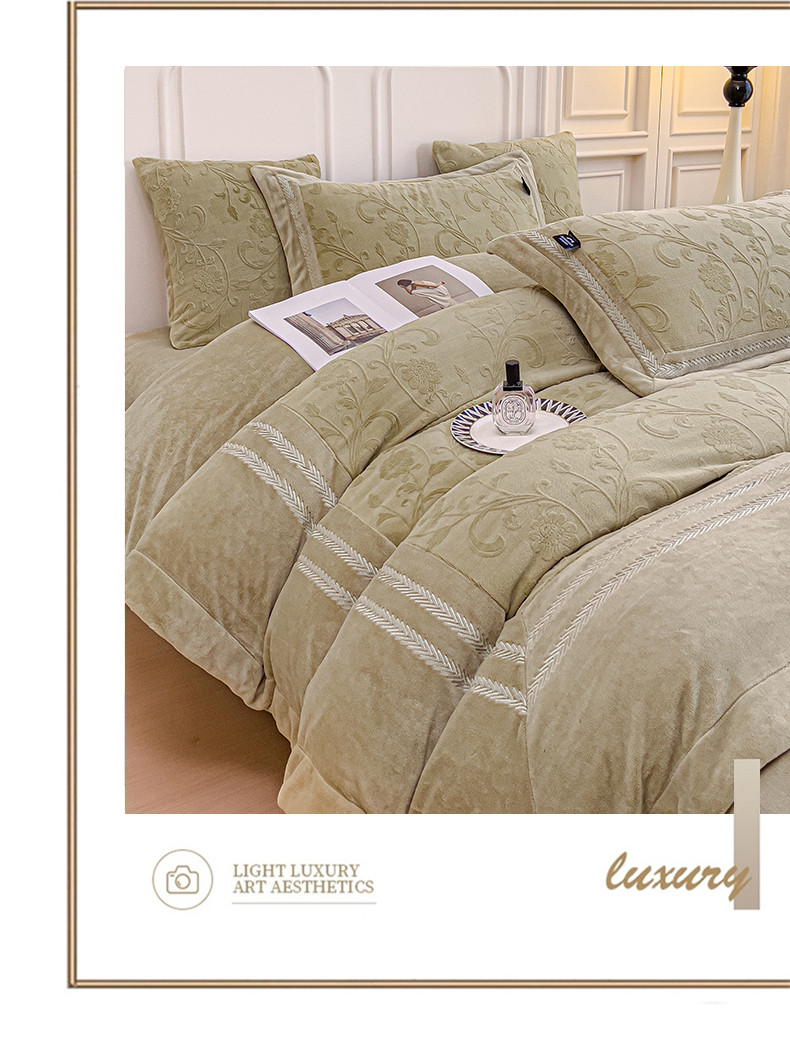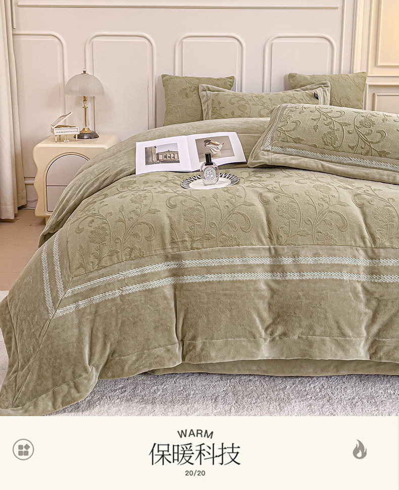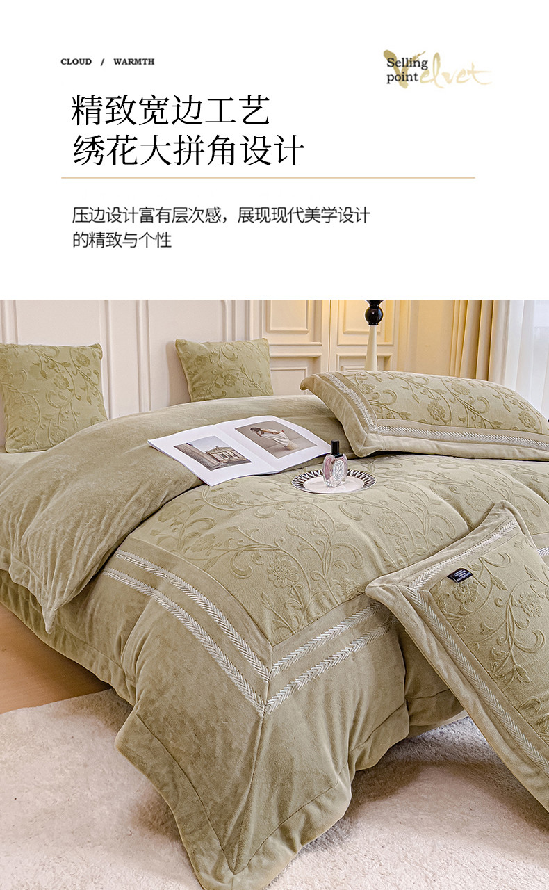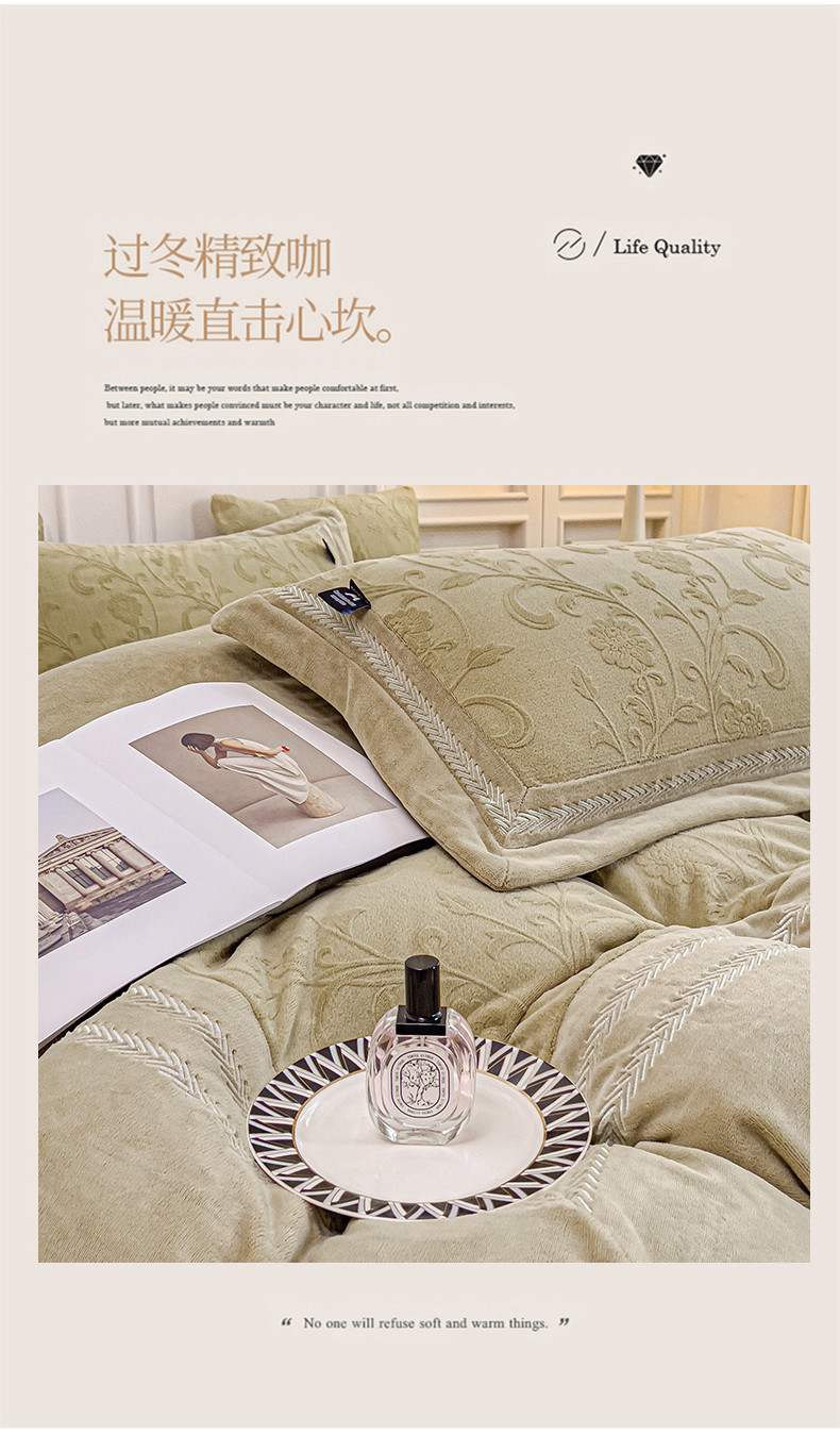 (总)品家居 2025新款5D雕花牛奶绒绣花大拼角四件套-岁月静好,粉色,蓝色,秋黄