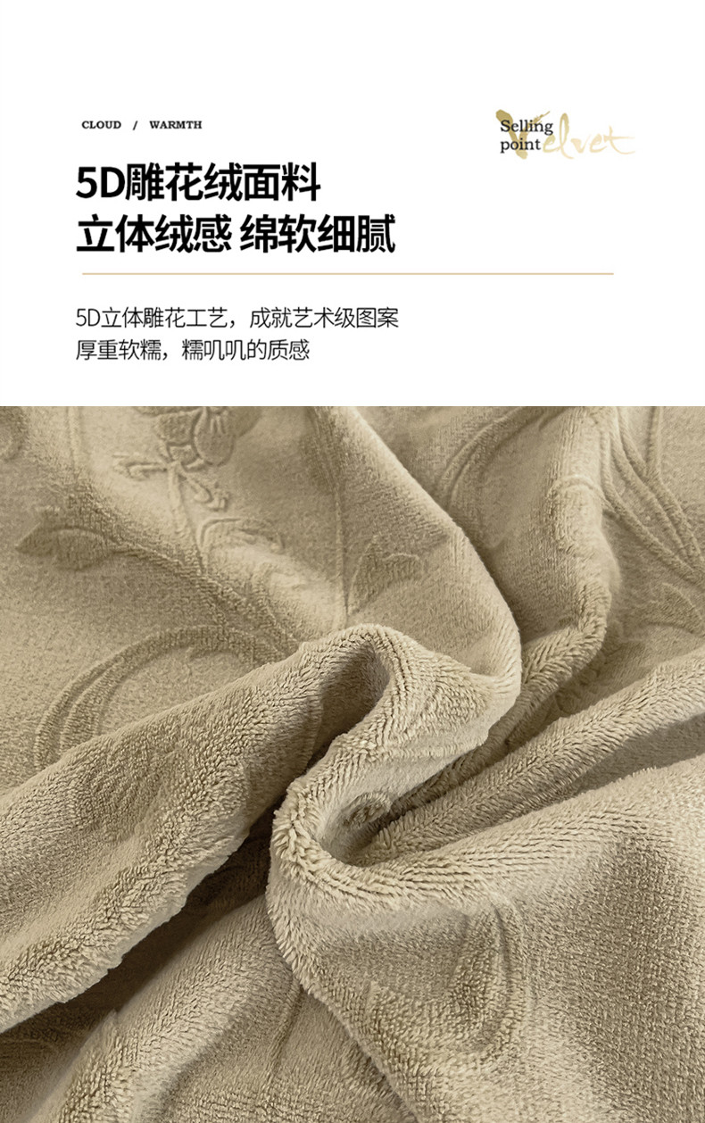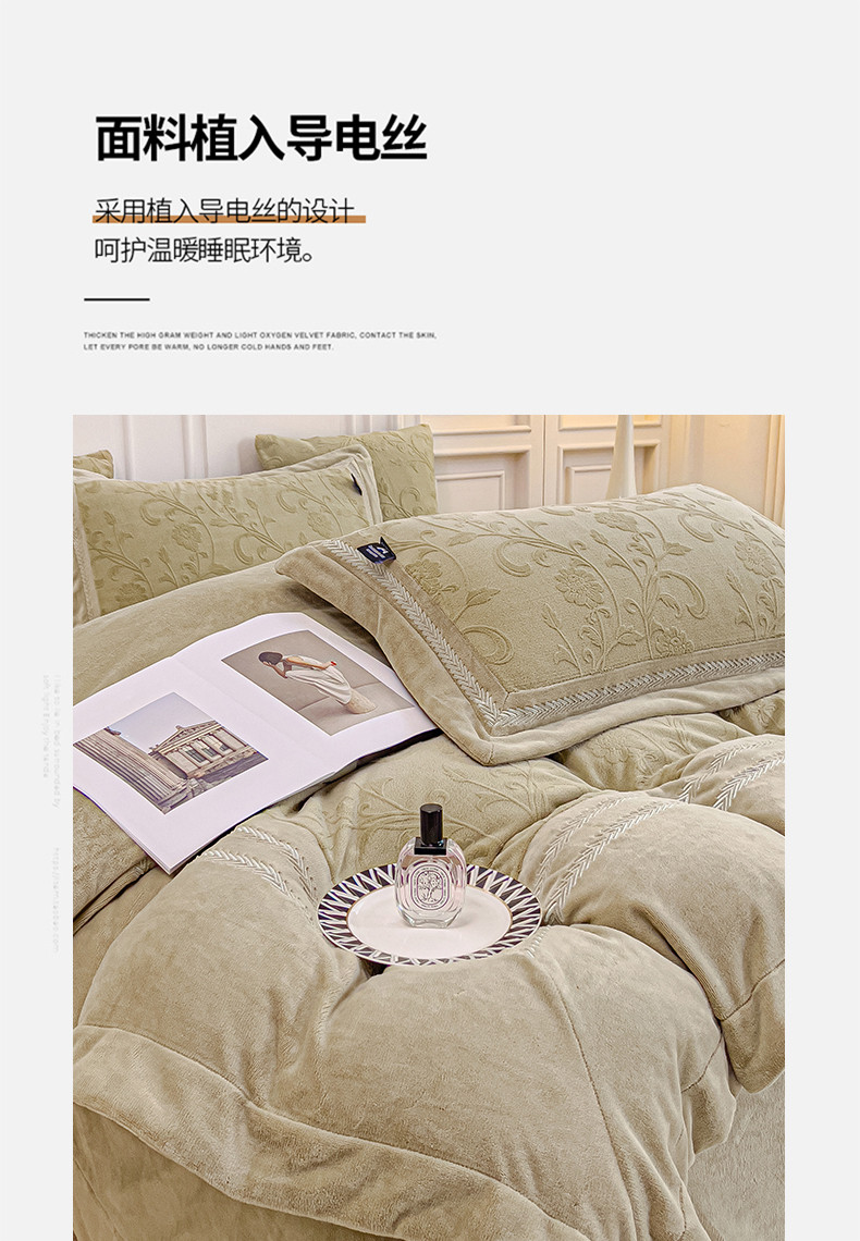 商品名称:品家居 2025新款5D雕花牛奶绒绣花大拼角四件套-岁月静好 秋黄