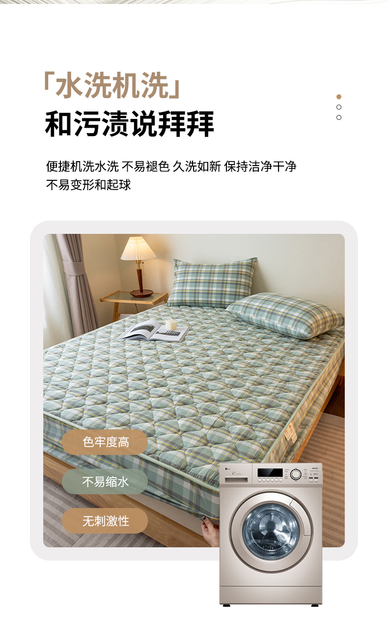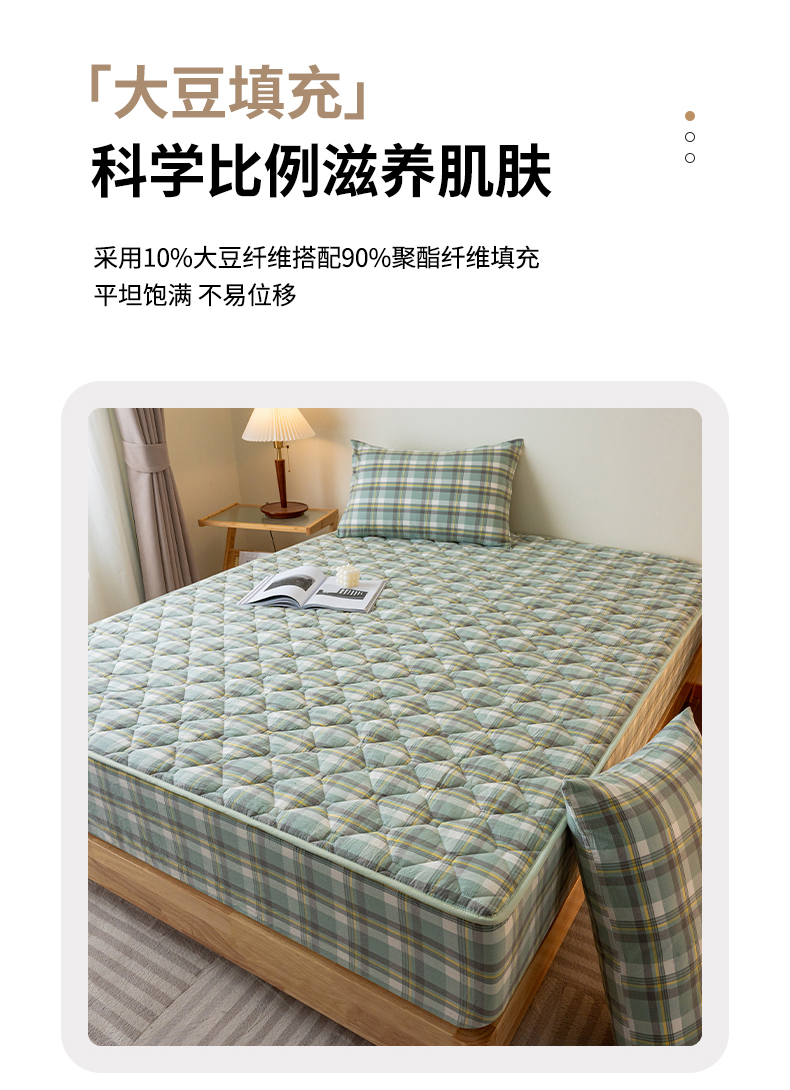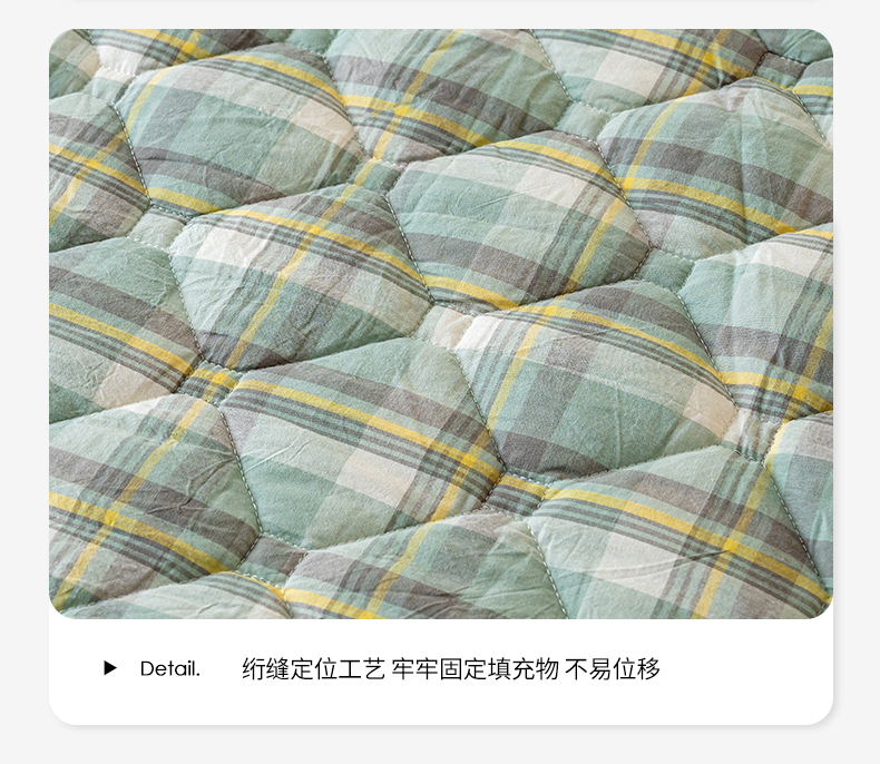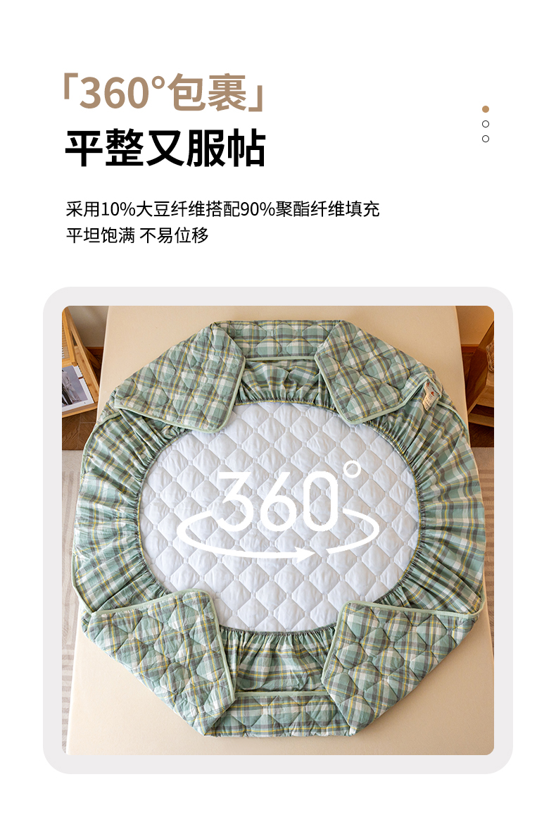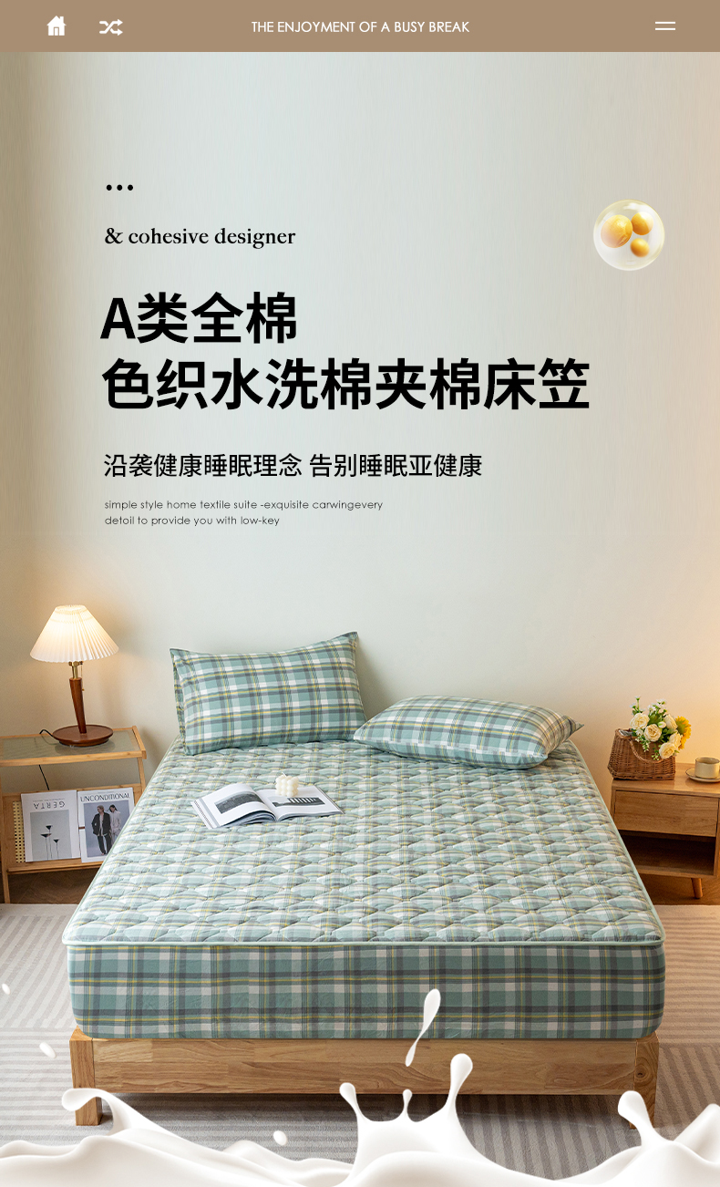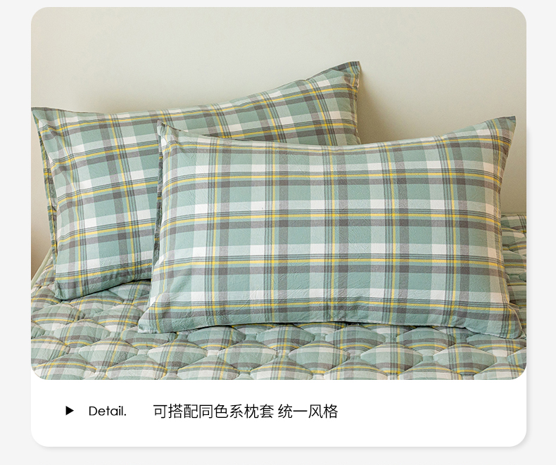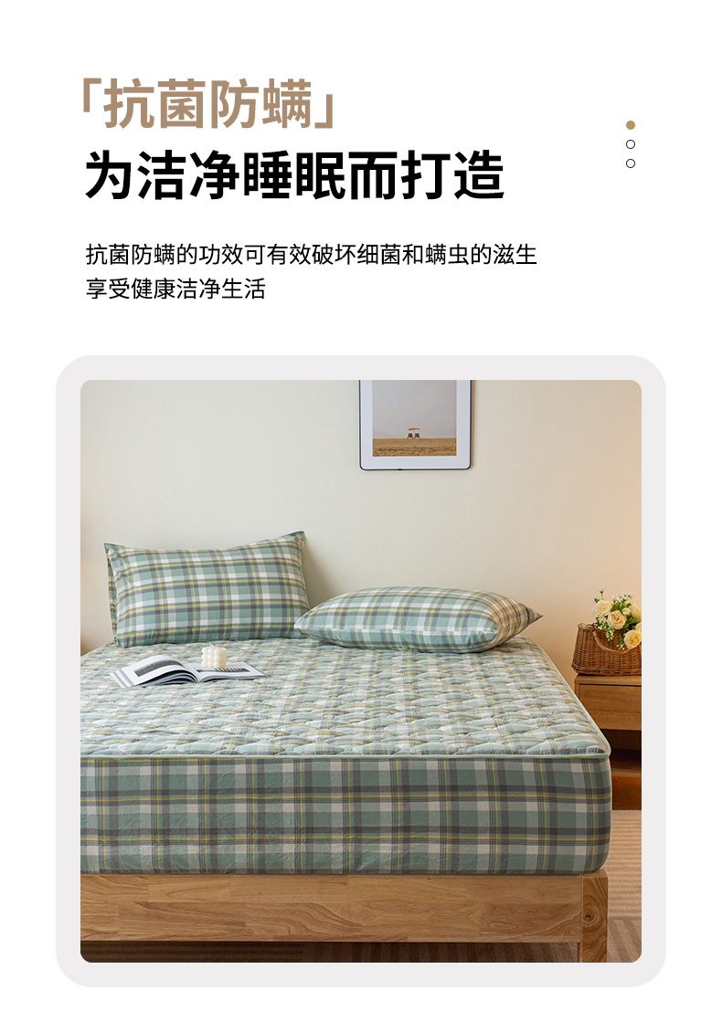 • 91家纺网 家纺一手货源 找家纺 X猫先生床笠 2024新款全棉色织水洗棉夹棉床笠 莫妮-绿