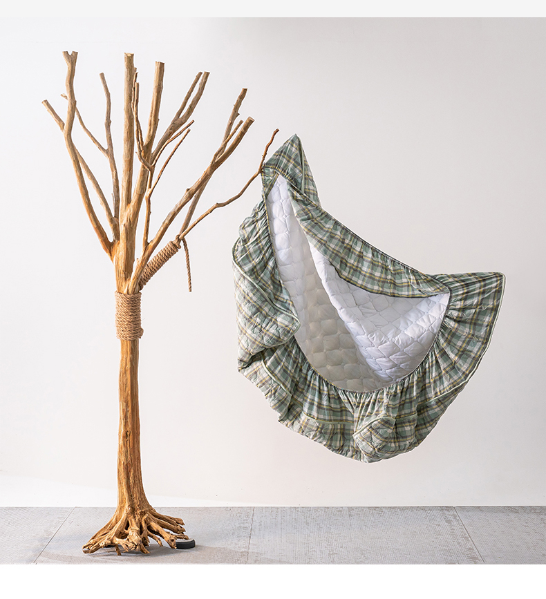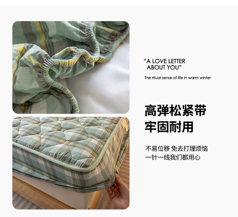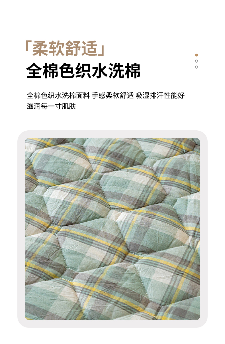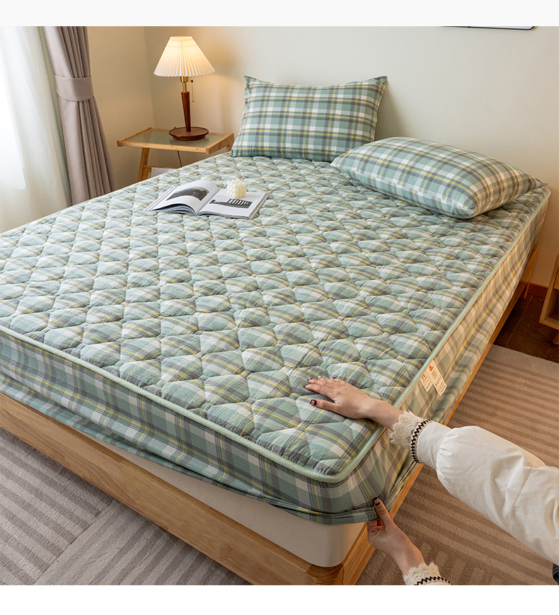 X猫先生床笠 2024新款全棉色织水洗棉夹棉床笠 莫妮-绿