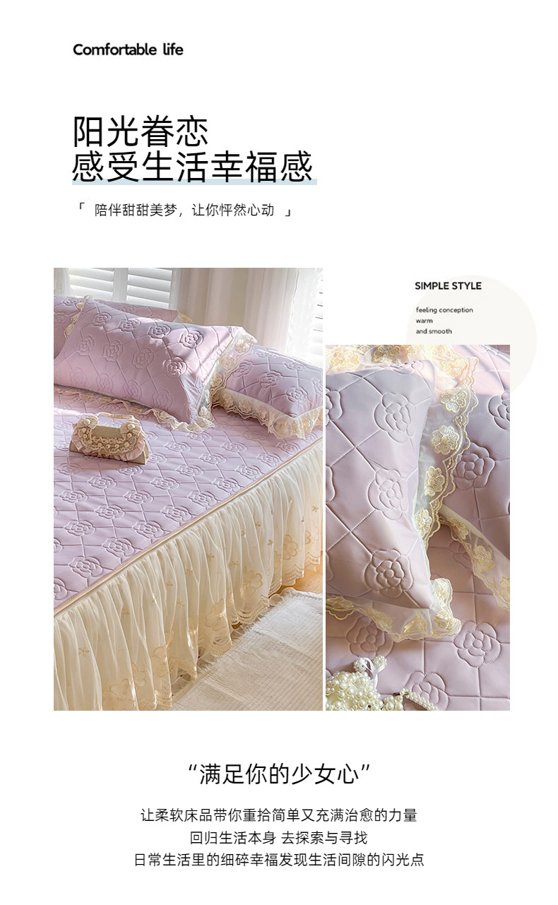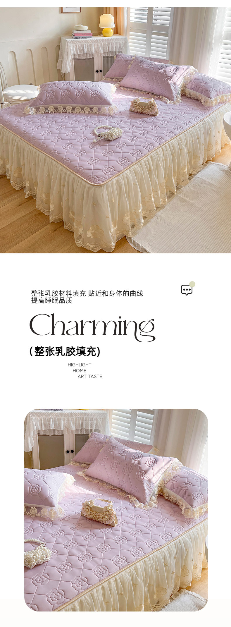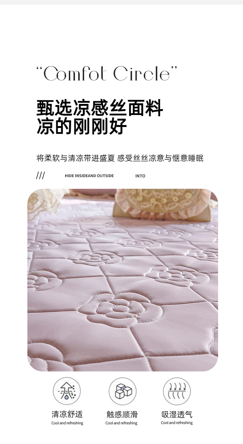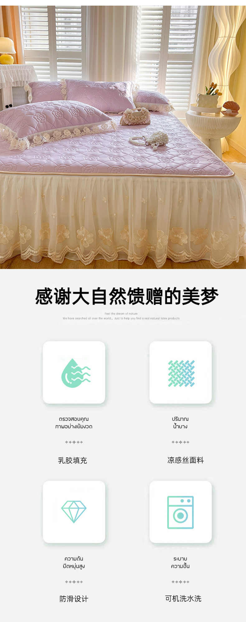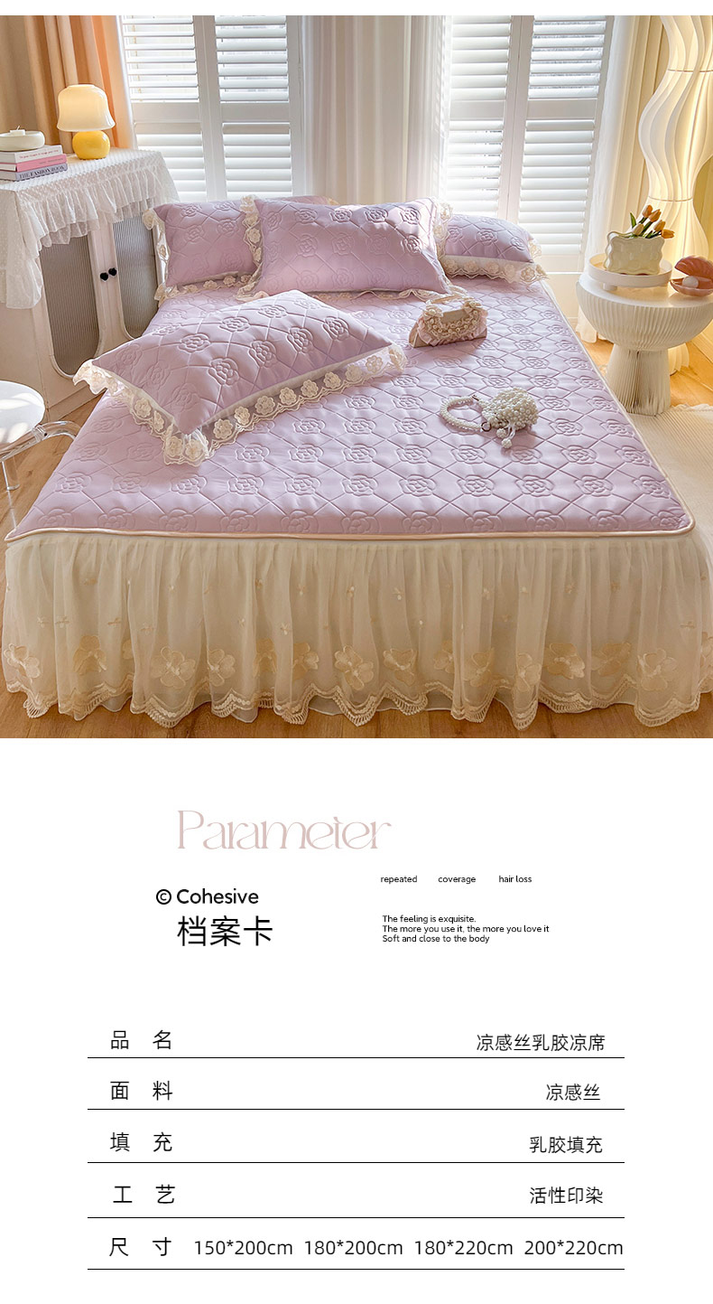 (总)麒豆豆2025新款凉感丝床笠式床裙乳胶凉席,白,粉,灰,蓝,绿,驼,玉,紫
