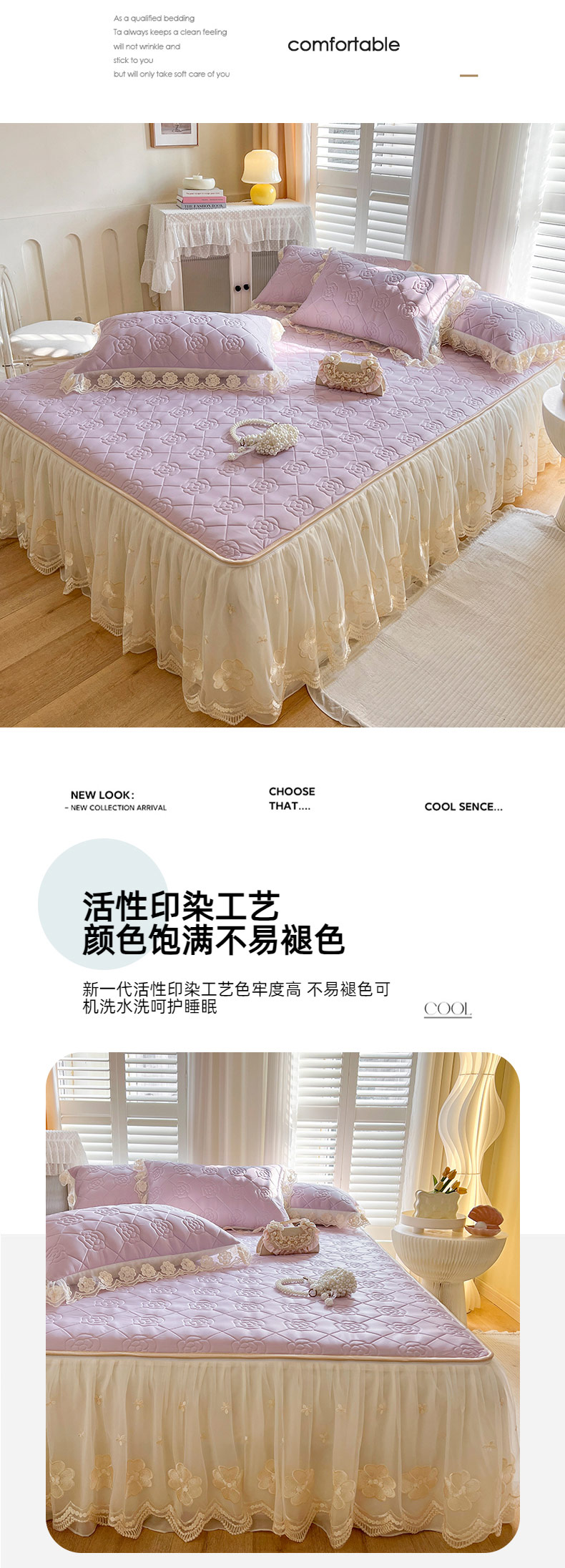 商品名称:麒豆豆 2024新款凉感丝乳胶凉席夏被四件套床裙款 风信紫