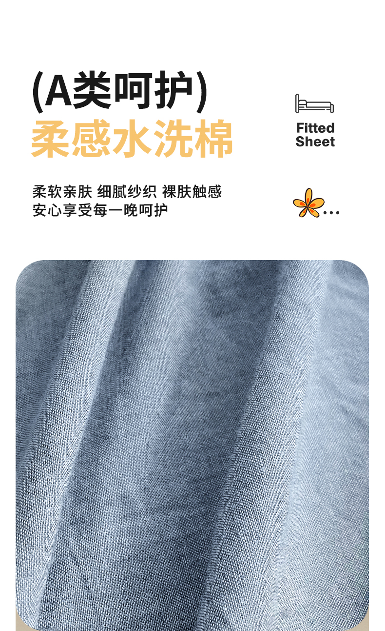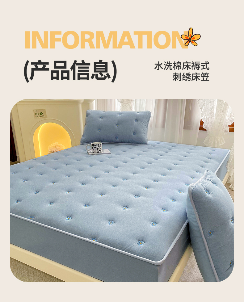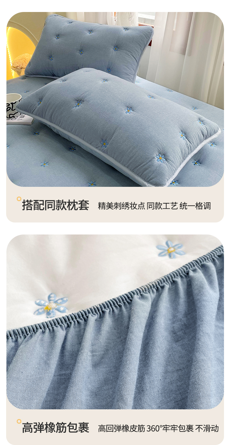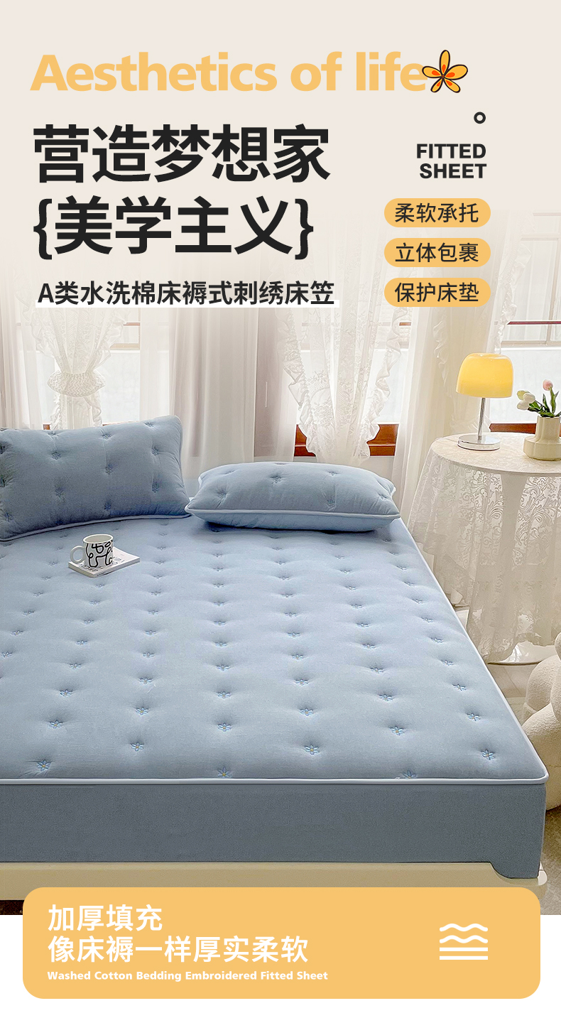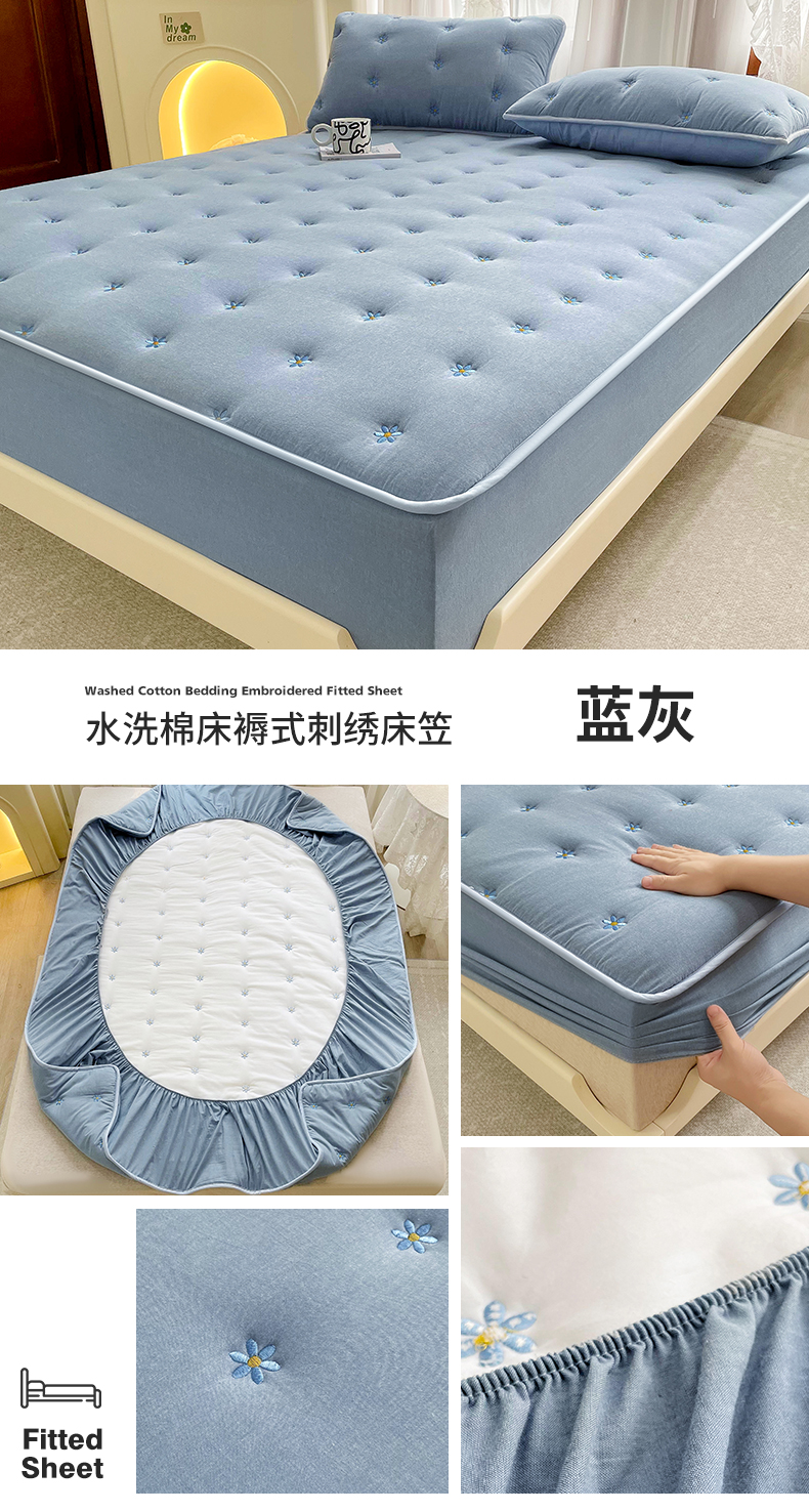 商品名称:予梦家纺 2024新款水洗棉夹棉刺绣床笠 乐芙兰-蓝灰